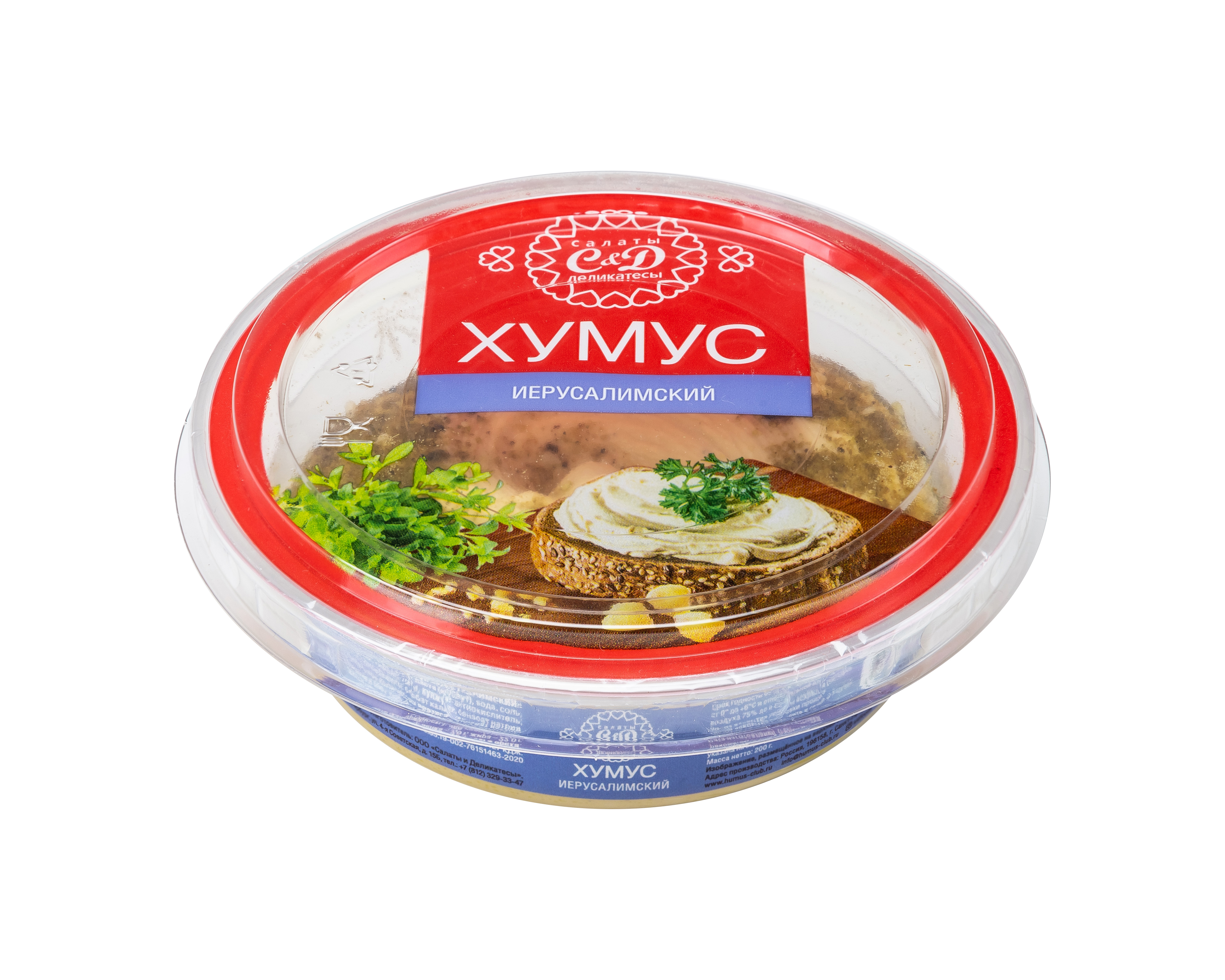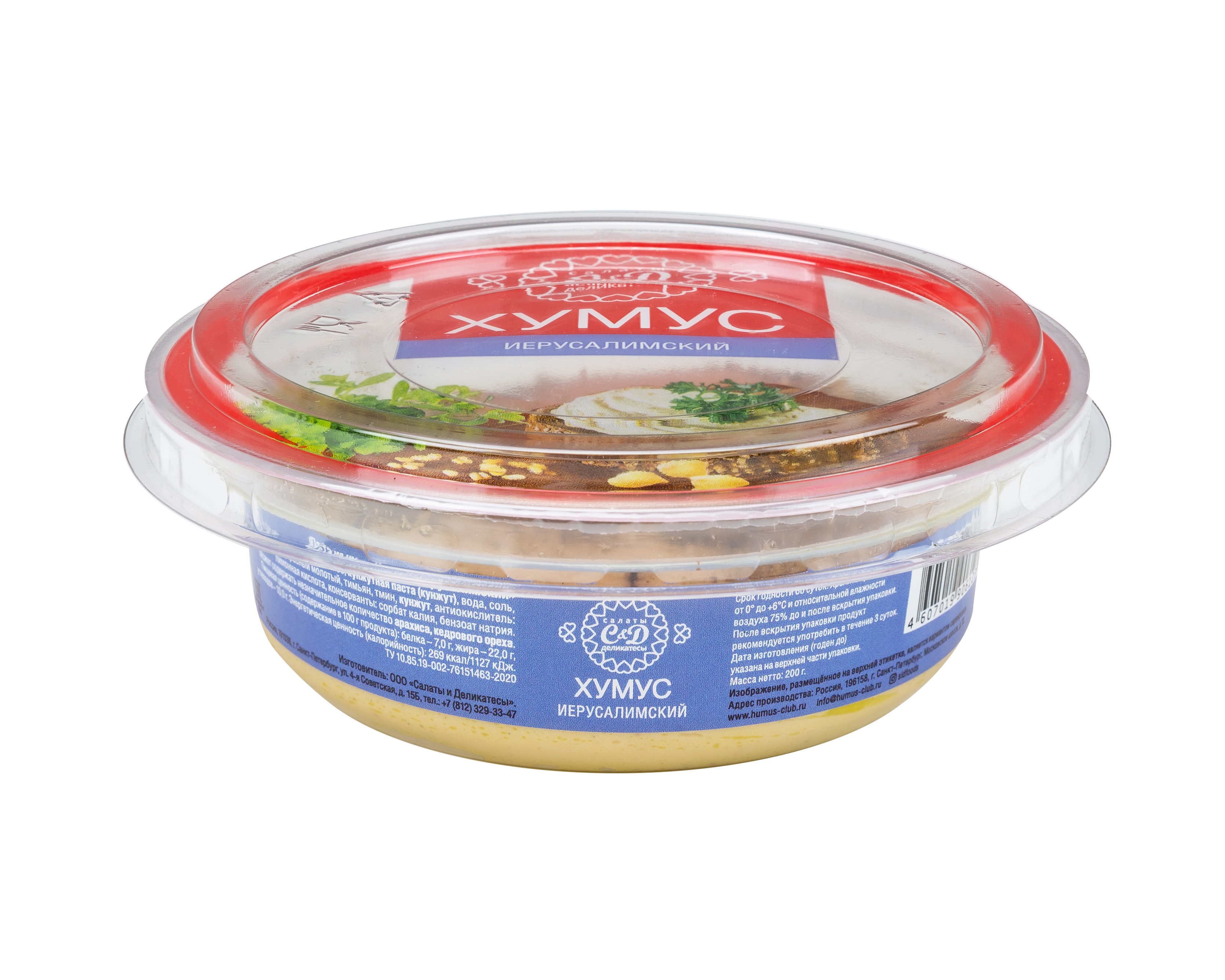 Хумус «иерусалимский» изготавливается из нута и кунжутной пасты с добавлением особых ближневосточных специй, которые придают продукту пикантный, пряный вкус.