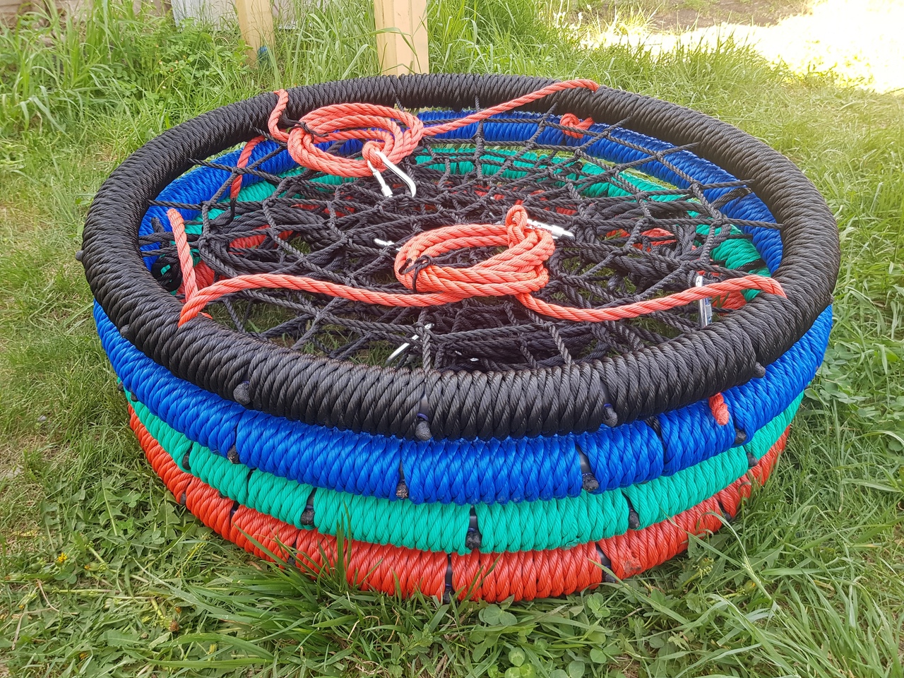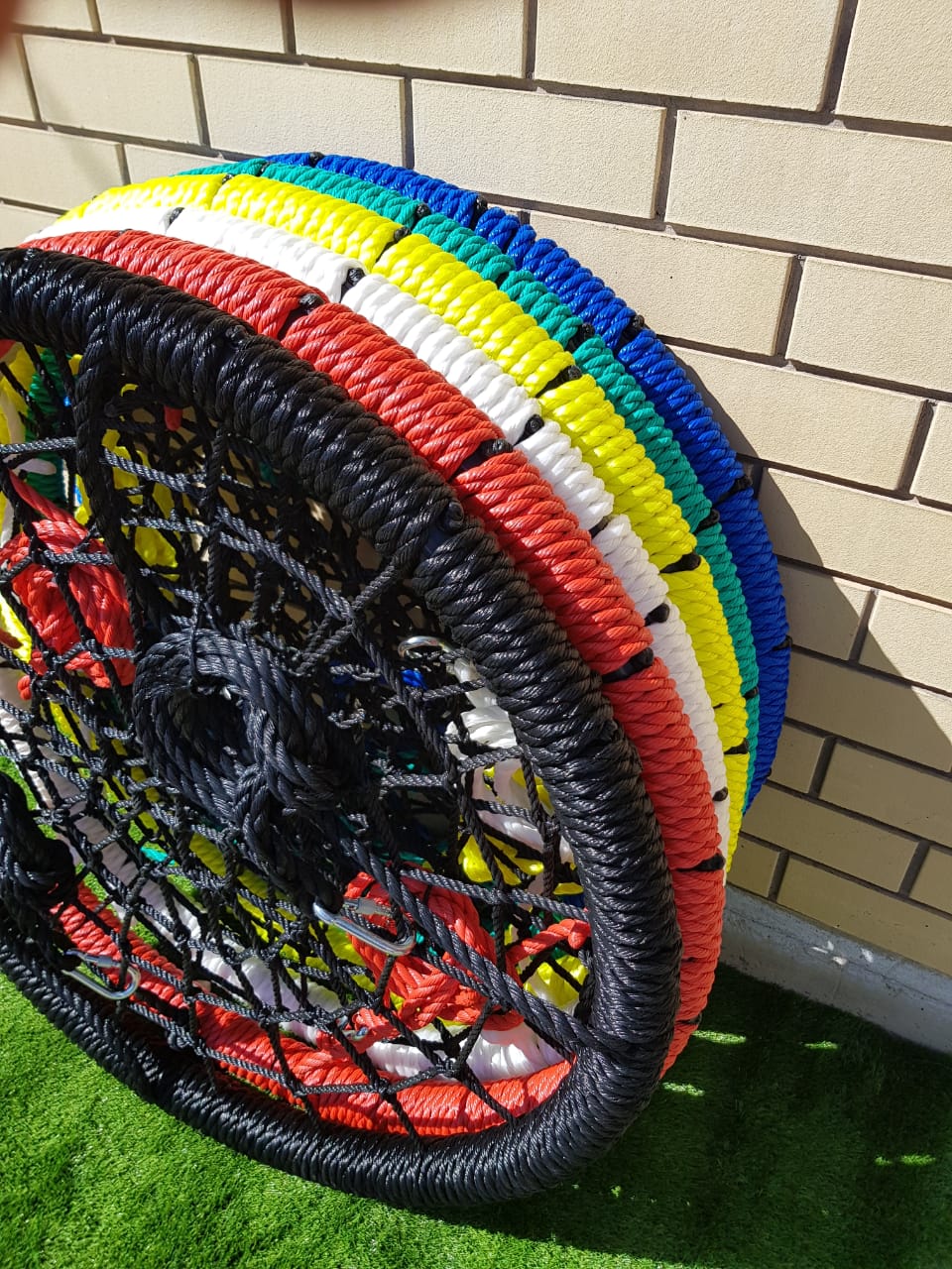 — Подвесы и обод качелей изготовлены из трёхпрядного каната толщиной 14мм;