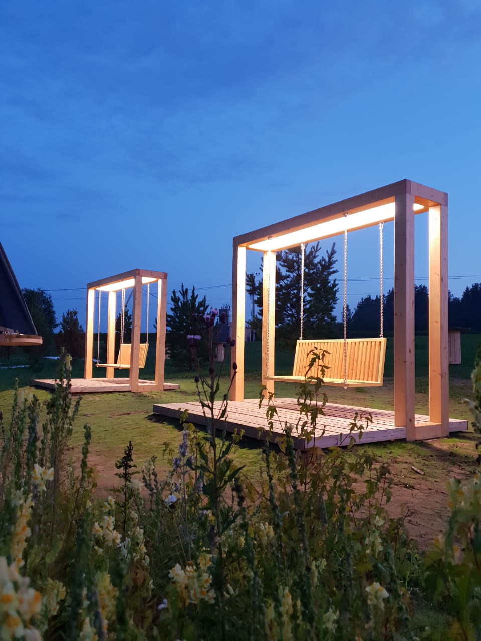 Внедрение световой панели на крыше увеличило возможное время эксплуатации качелей, добавило дополнительный источник освещения территории.