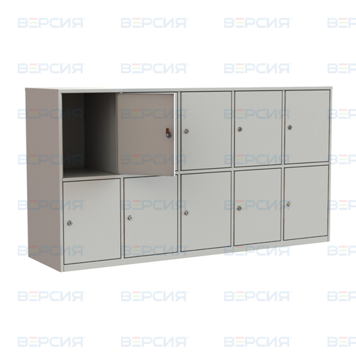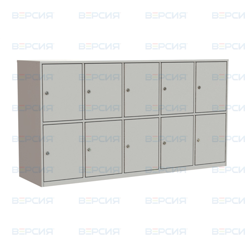 Окраска порошковая. цвет: светло-серый согласно RAL. Модель имеет 10 горизонтально расположенных ячеек. Каждая ячейка закрывается на индивидуальный замок.