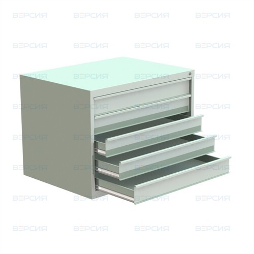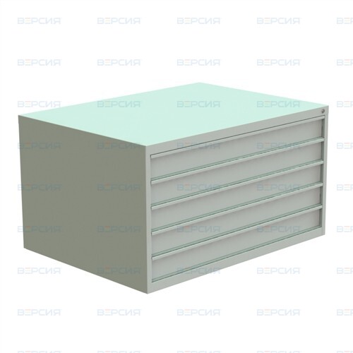 Предназначен для безопасного хранения документации на листах формата А0. Имеет 5 выдвижных ящиков. Максимальная нагрузка на ящик: 30 кг. Все ящики картотеки закрываются на центральный замок.