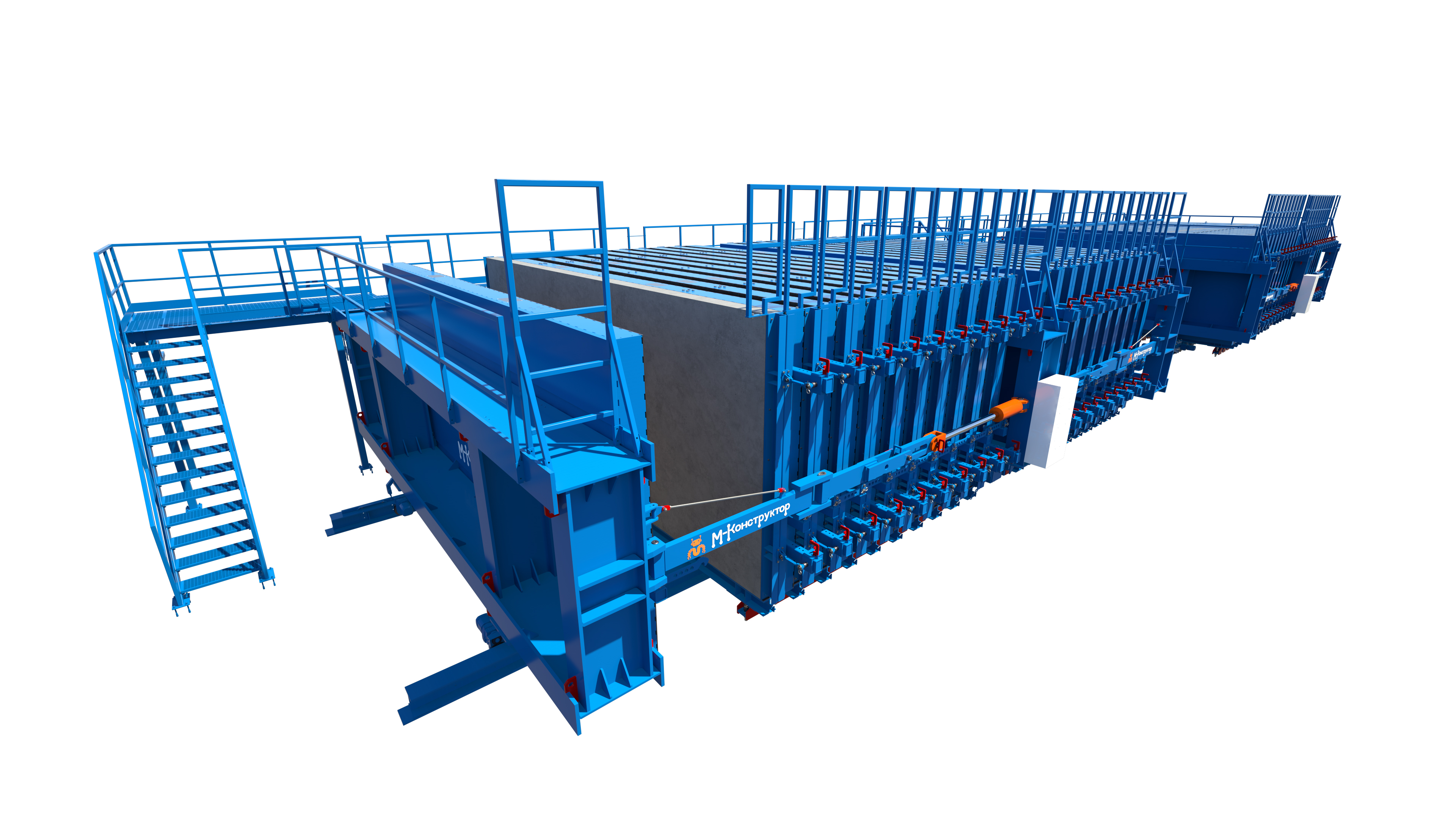 Кассетные установки являются самым эффективным решением для выпуска однослойных стеновых панелей с экономией производственных площадей, снижением затрат и времени на их изготовление. Панели формуются вертикально в разъемных кассетных формах. В них же бетон набирает необходимую прочность.