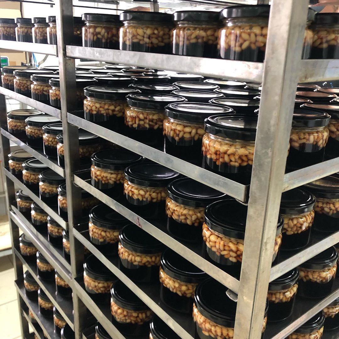 У нас довольно обширный ассортимент варенья, конфитюра, пасты, джема, глинтвейна, карамели, меда, сиропа, шоколада, цукатов — из сосновых, еловых, кедровых, ягодных дикоросов. Грибной продукции: белый гриб боровик, лисичка, груздь, подосиновик, моховик, опенок, масленок, ежовик.