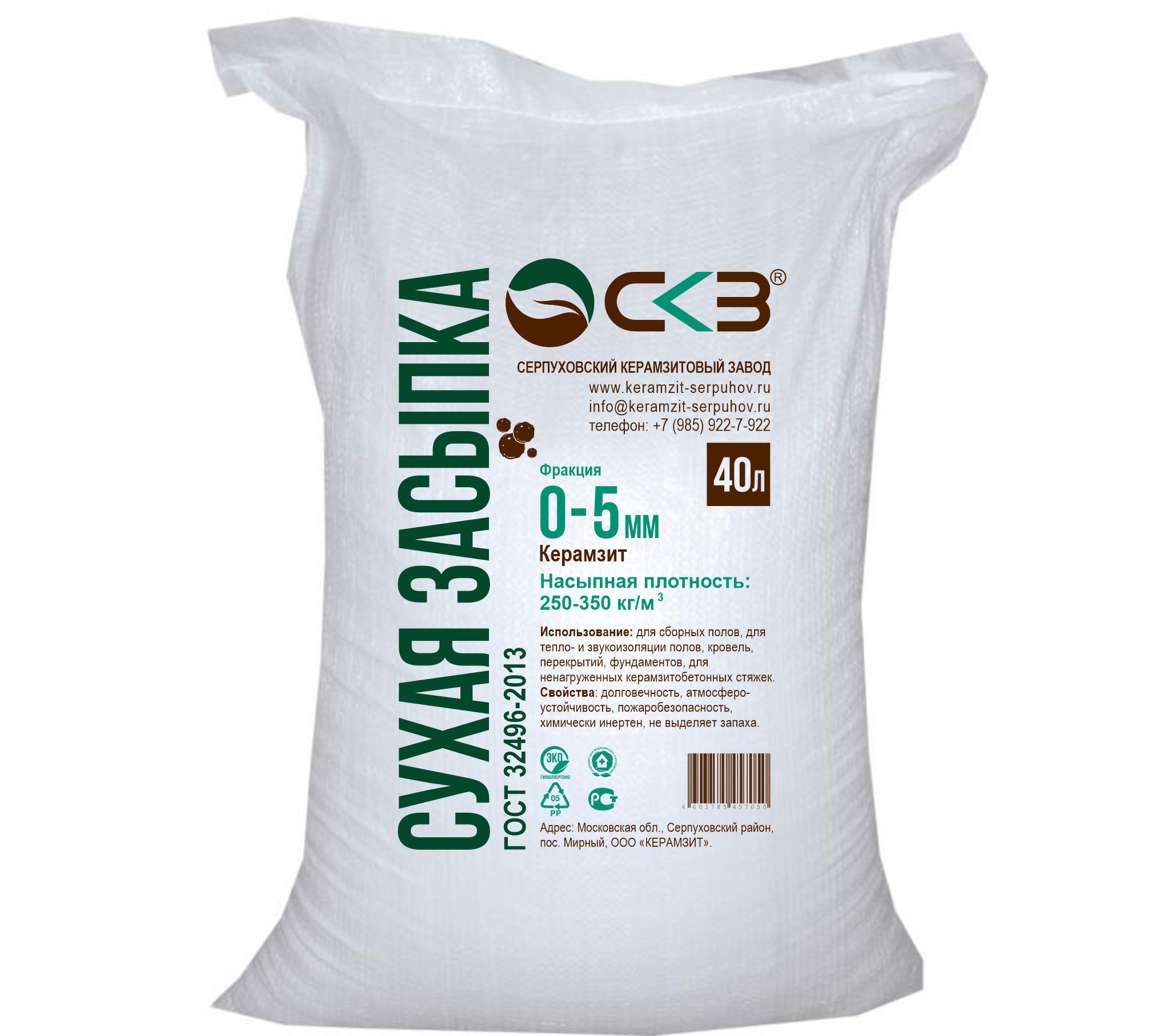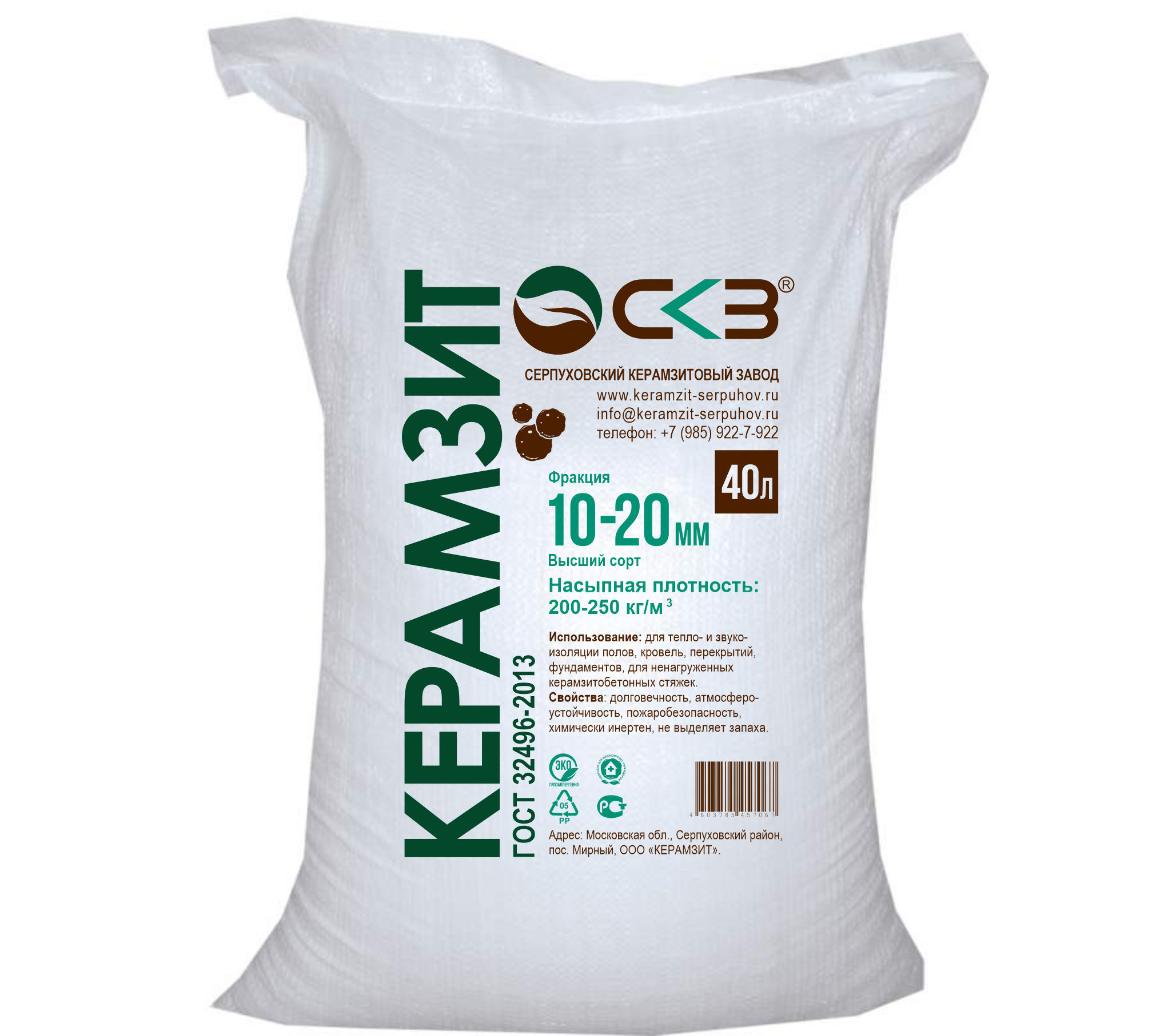 ООО КЕРАМЗИТ является производителем керамзита. Завод расположен в Московской области, г. Серпухов. К вашему вниманию представлено 4 фракции: 0-5 мм 5-10 мм 10-20 мм 20-40 мм. Фасуем в фирменные мешки 40 и 50 литров.