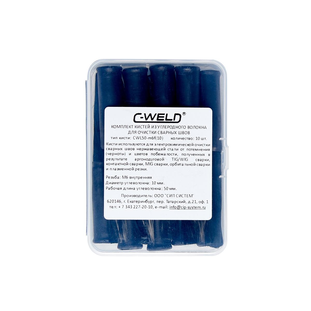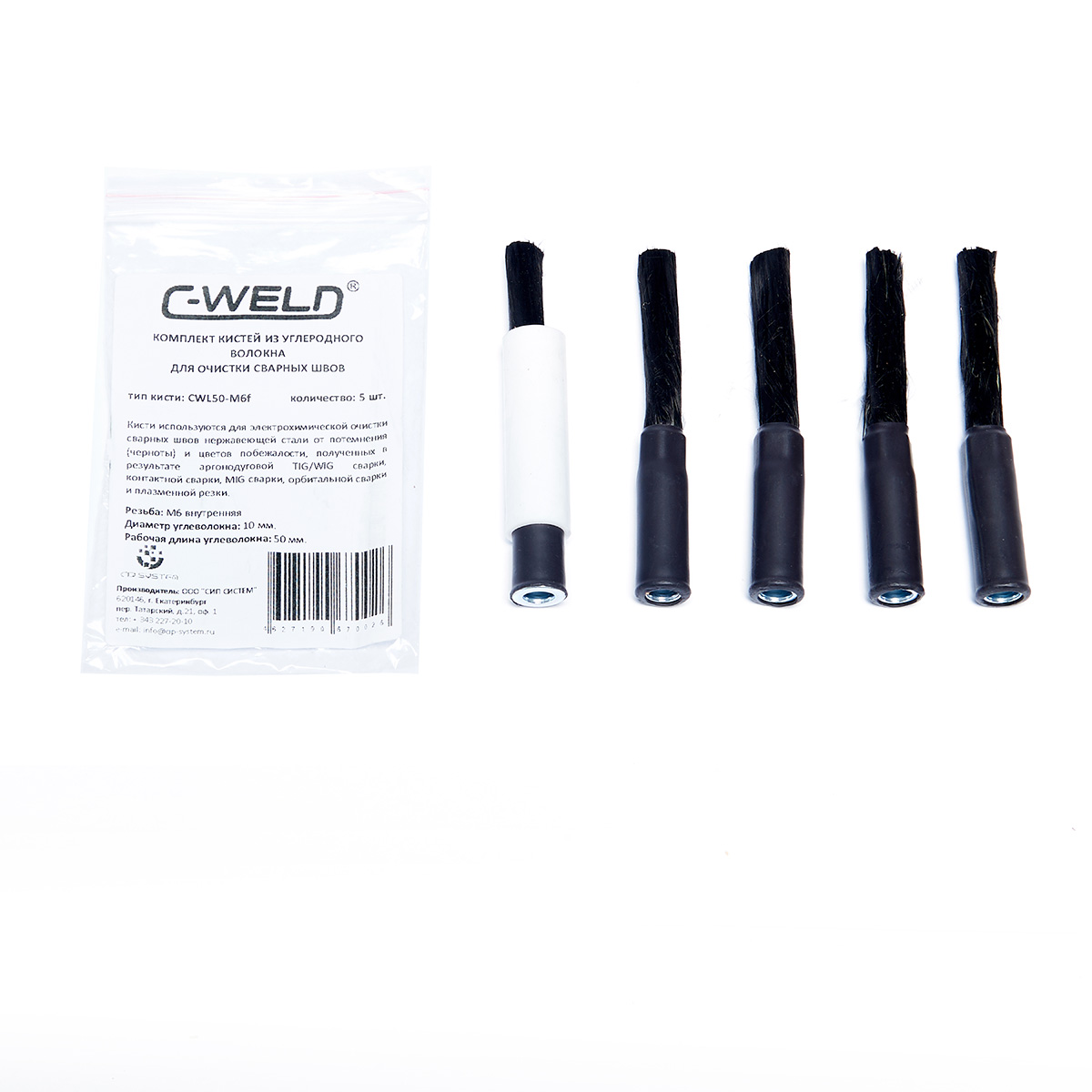Кисть из углеволокна L50 М6 внутренняя используется для очистки сварочных швов нержавеющей стали от потемнения (черноты) и цветов побежалости, полученных в результате аргонодуговой TIG / WIG сварки, контактной сварки, MIG сварки, орбитальной сварки и плазменной, лазерной резки.
