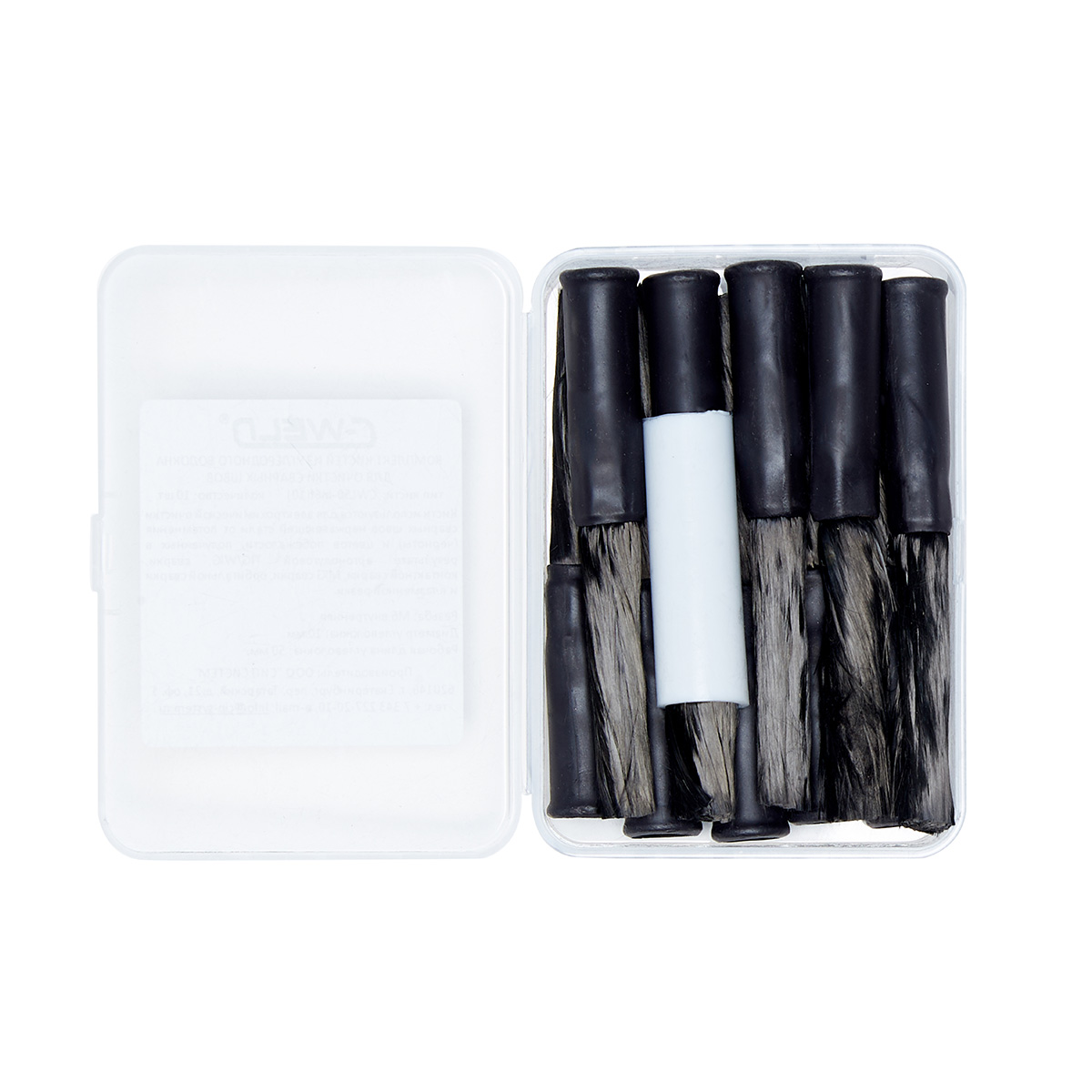 Кисть подходит для любых аппаратов-пассиваторов с резьбовым креплением кисти М6, либо через адаптер к щелевому креплению ручки аппарата. Кисть изготовлена из углеродных волокон для лучшей передачи тока при электрохимической очистке сварных швов. Благодаря небольшому диаметру и гибкости кистью удобно производить очистку сварных швов в труднодоступных участках. Углеродные волокна не ломаются, имеют хорошую токопроводимость и долгий срок службы.