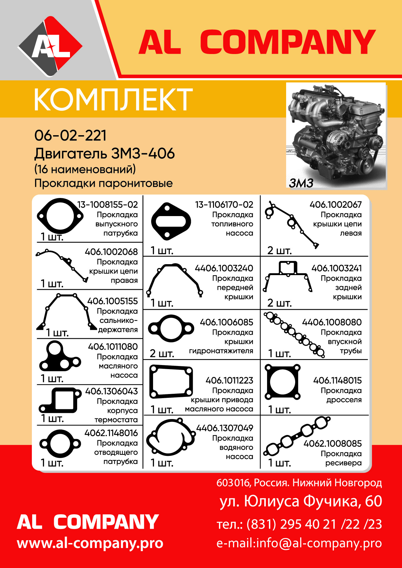 Комплект паронитовых прокладок ( 16 наименований) для Двигателя ЗМЗ-406.