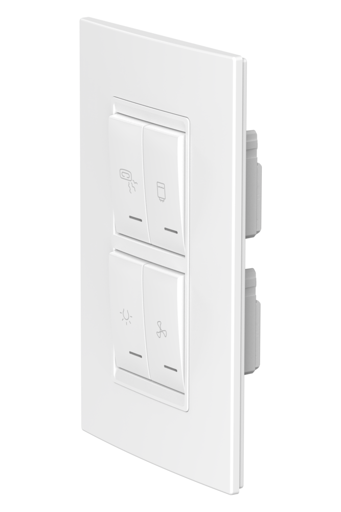 4х выключатель СП, 16А (арт. 72105) + 1х клавиша 1М (арт. 73202) + 1х клавиша 1М (арт. 73206) + 1х клавиша 1М (арт. 73205) + 1х клавиша 1М (арт. 73204) + 1х рамка монтажная 2М+2М (арт. 71102) + 1х рамка декоративная 2М+2М (арт. 70142) +