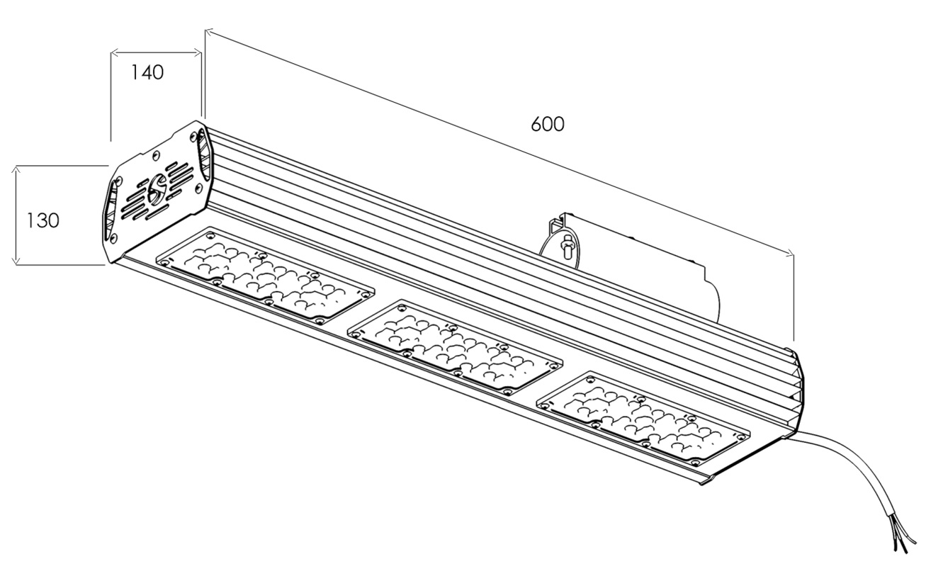 Модель 100 Вт имеет 3 модуля и длину 600 мм