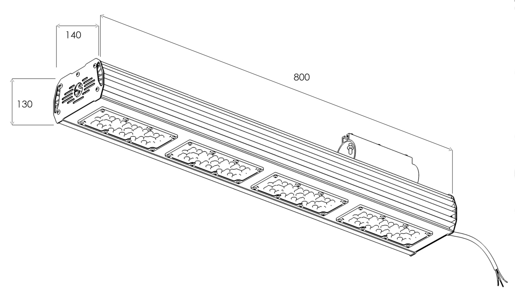 Модель 150 Вт имеет 4 модуля и длину 800 мм