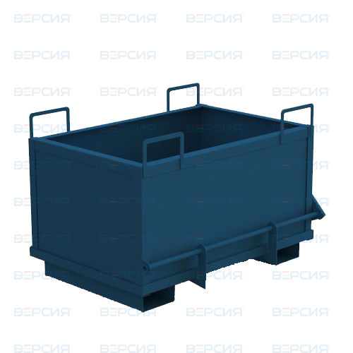 Имеет откидное дно, которое откидывается при разгрузке. Разгрузка контейнера возможна только в поднятом положении. Поднятие контейнера осуществляется с помощью вилочного погрузчика. Для разгрузки контейнера фиксатор переводиться в открытое положение вручную. В закрытом положении фиксатор удерживает дно контейнера от непроизвольного открытия.