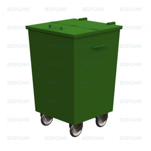 Объем мусорного контейнера: 750 литров. Окраска: ПФ-эмаль. Цвет изделия: зеленый. В зависимости от модели возможна поставка контейнера с крышкой. По бокам изделие имеет две небольшие ручки.