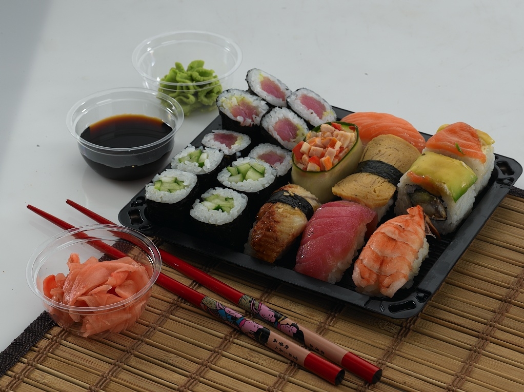 Контейнеры состоят из двух частей - дна и крышки, которые изготовлены из экологически чистого пластика (ПЭТ). Прозрачная крышка контейнера для суши и роллов плотно закрывается благодаря специальным замкам, тем самым защищая продукты питания от попадания различных микробов. В упаковке суши и роллы будут оставаться свежими и вкусными продолжительное время.