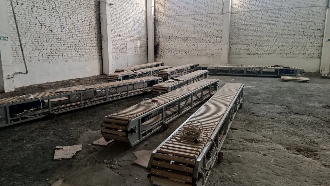 - Самоходная конструкция с электродвигателем — позволяет оперативно перемещать конвейер по рабочей зоне.
