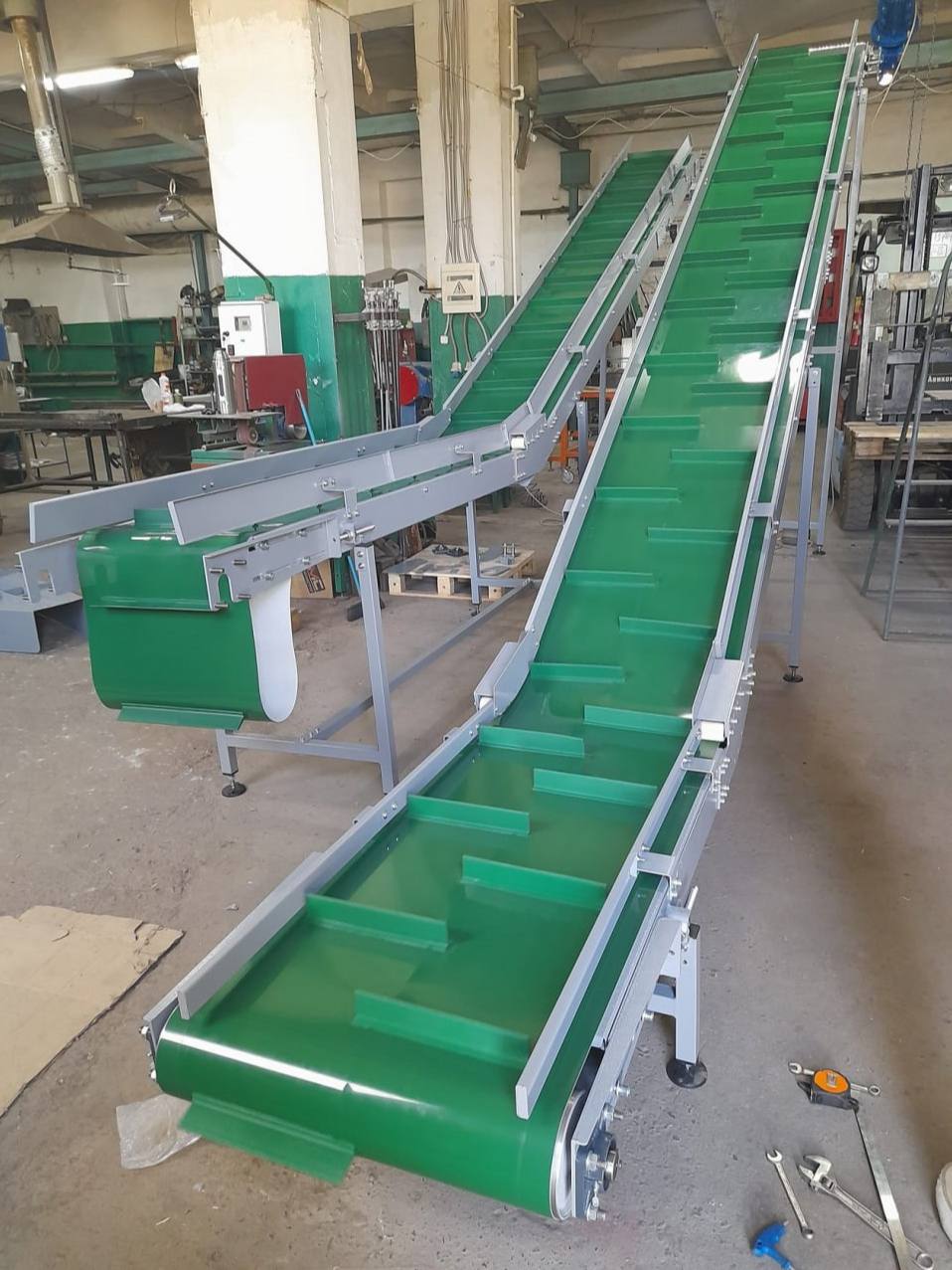 - Специальные бортики и перегородки на ленте — предотвращают просыпание и обеспечивают надёжное сцепление с грузом, даже при транспортировке под углом.