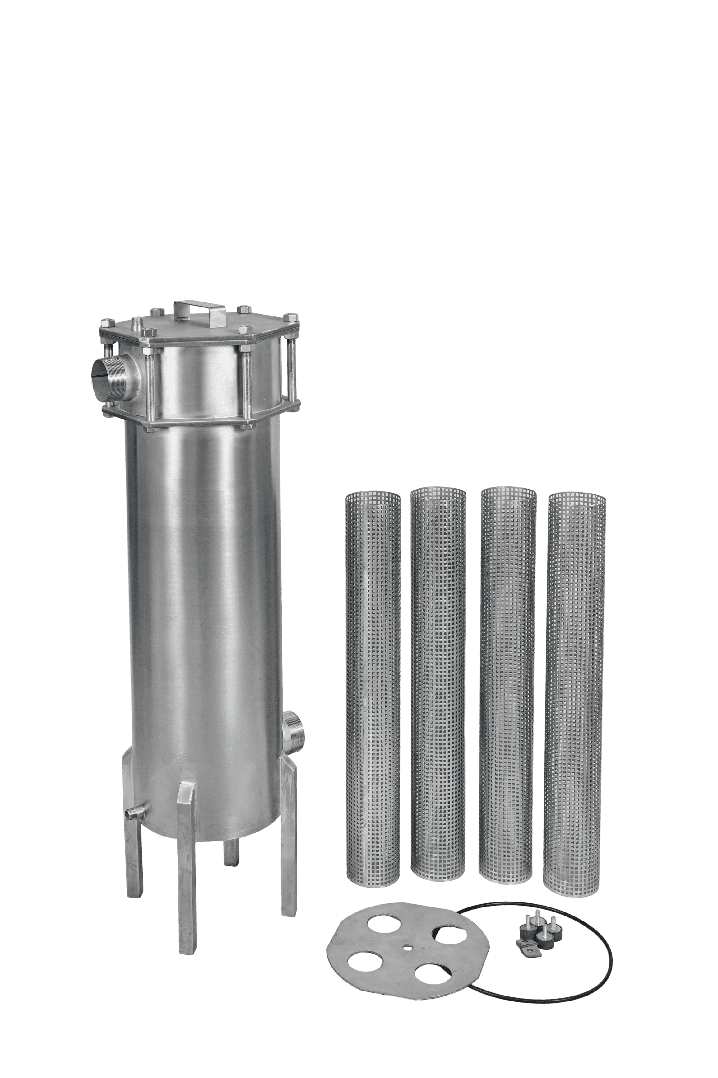 Корпуса мешочного типа (фильтродержатели) серии КМФ изготавливаются из нержавеющей стали AISI 304 толщиной от 2 мм, что позволяет использовать их как в системах водоподготовки, так и в пищевой, фармацевтической, химической и др. промышленностях.