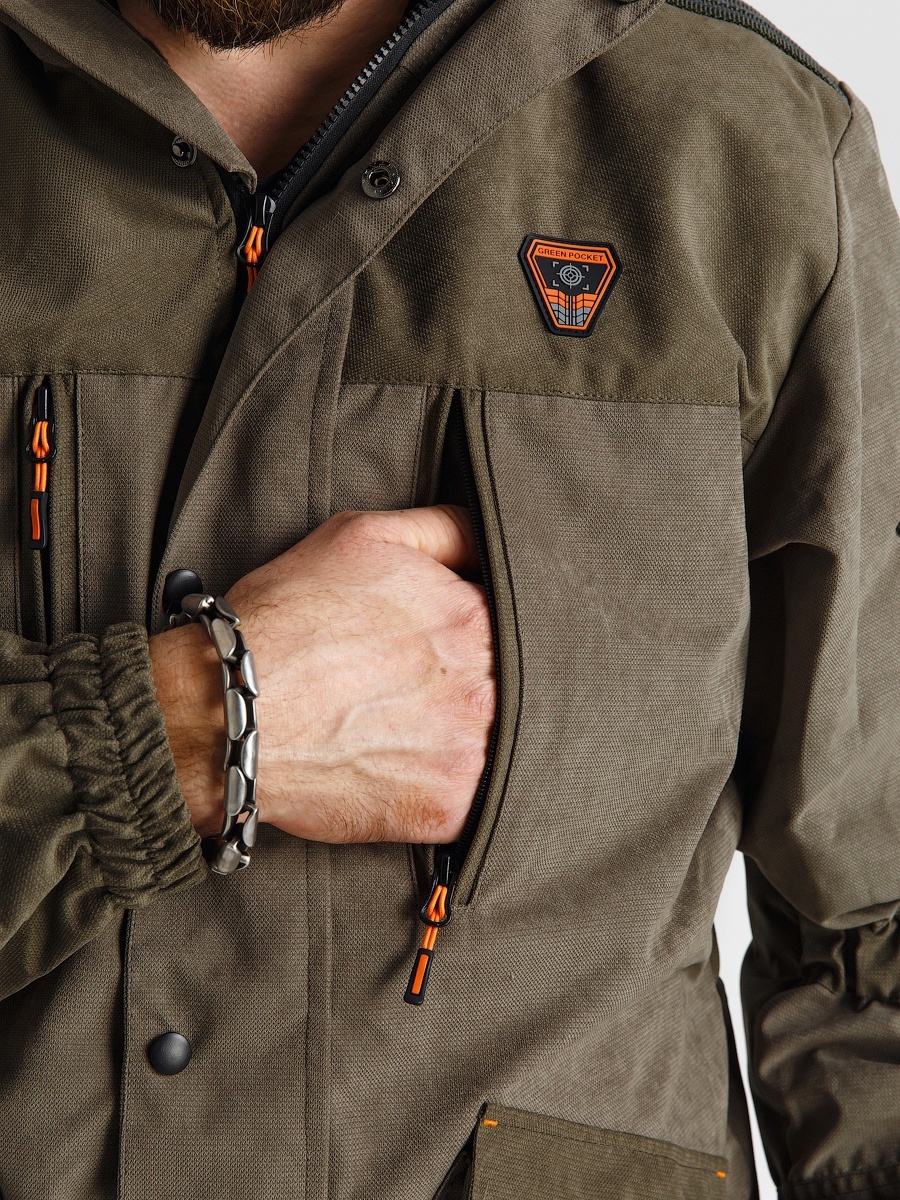 - Куртка: удлиненная, с ветрозащитным клапаном и вентиляционными каналами, семь карманов, высокий воротник-стойка с капюшоном регулировкой объема, рукава с ветрозащитой и дополнительной фиксацией.