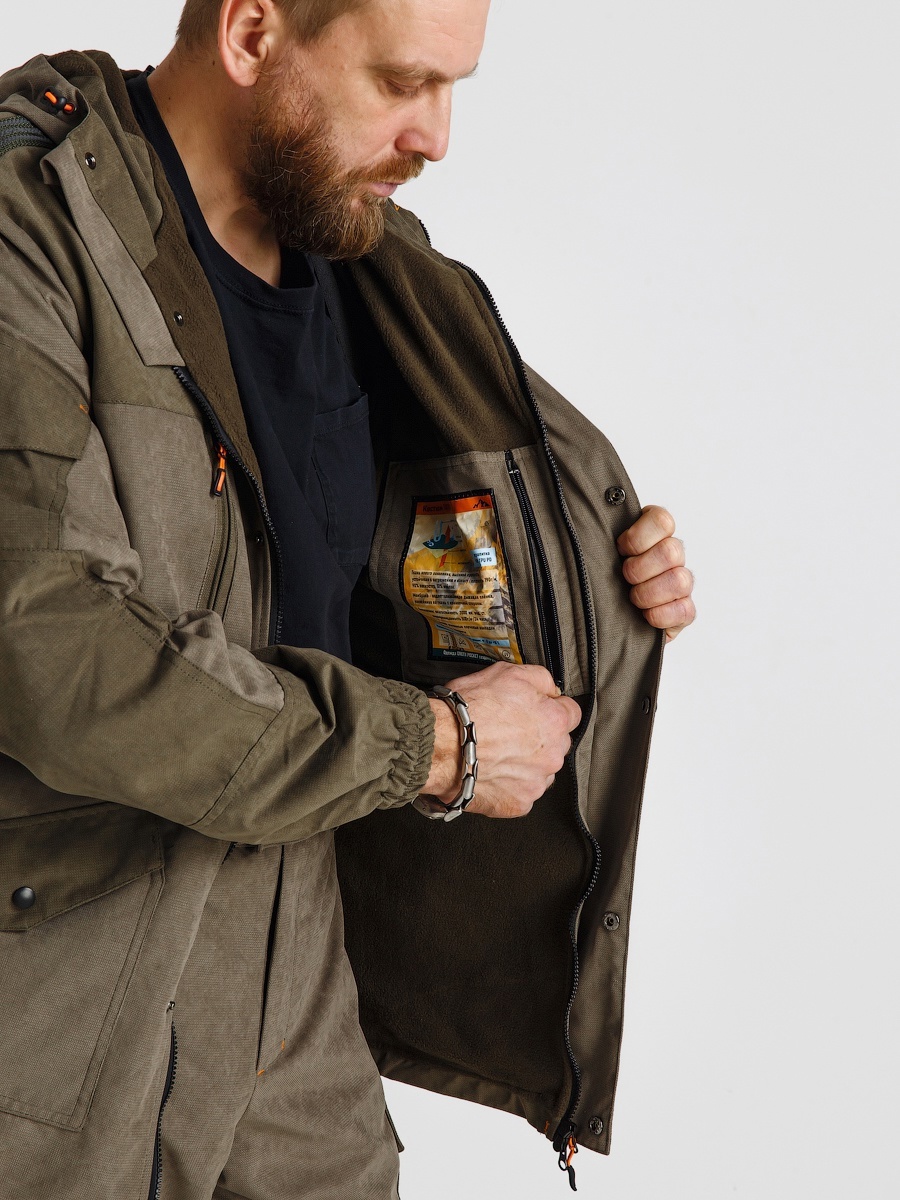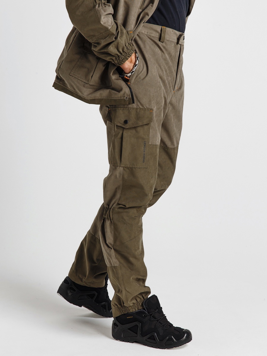 - Брюки: высокая посадка, удобные подтяжки, широкие шлевки под ремень, множество карманов. Подкладка из флиса до колена и синтезированного материала ниже для улучшенного скольжения.