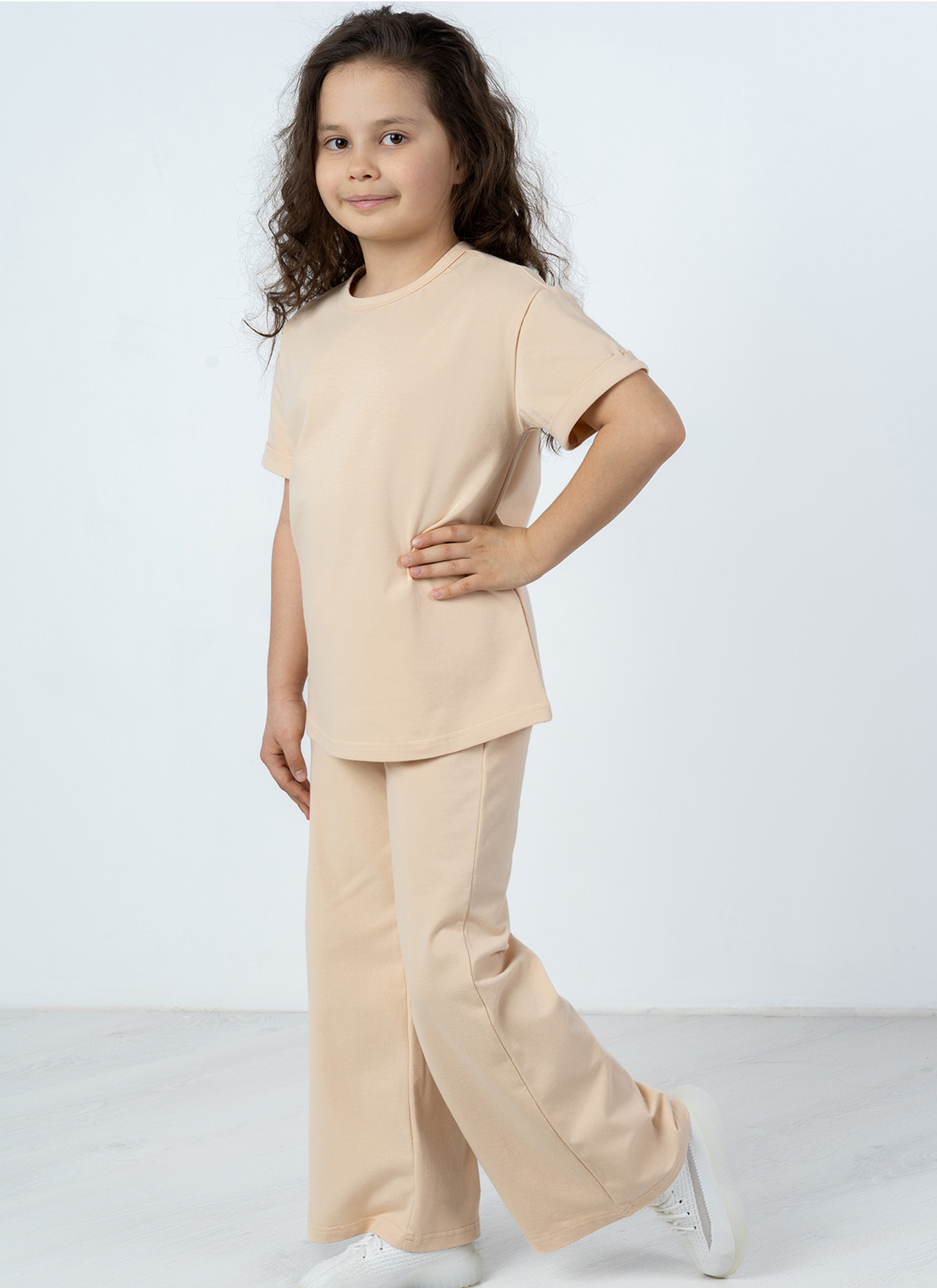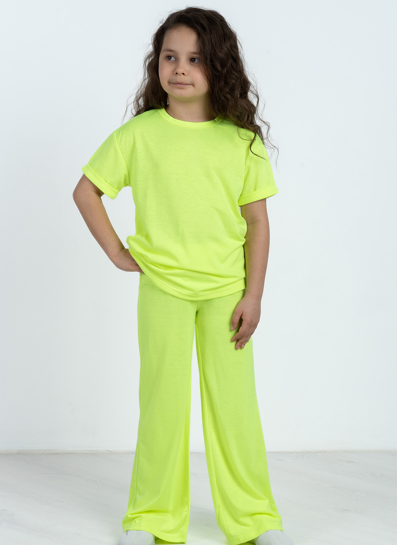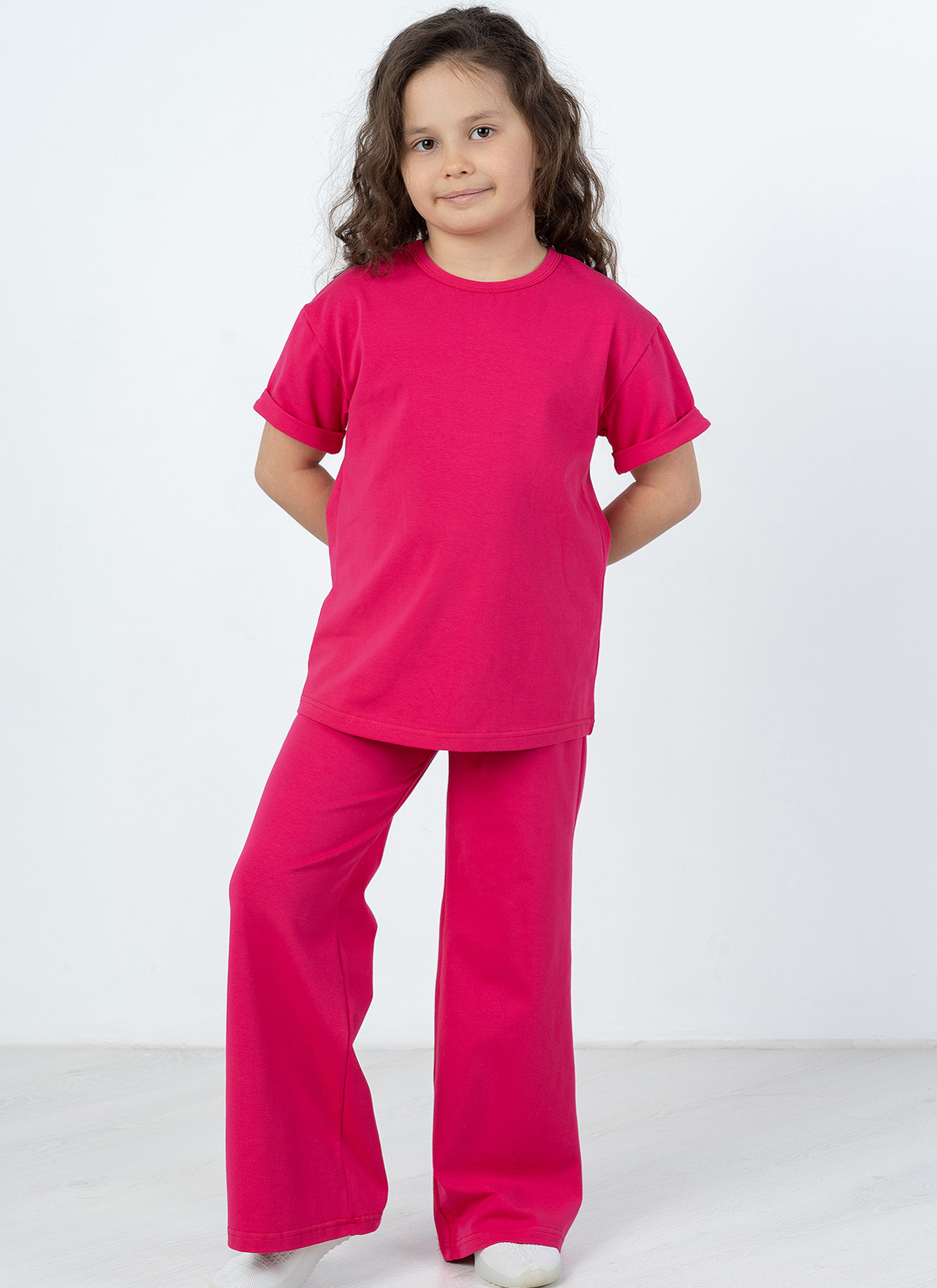 Стильный брючный костюм для девочки - отлично впишется в гардероб юной модницы на каждый день. Комплект для девочки летний изготовлен из мягкого и приятного к телу хлопкового полотна – кулирка с небольшим содержанием лайкры. Экологичная мягкая ткань приятно ощущается на коже и хорошо пропускает воздух. Костюм двойка брючный для девочки свободного силуэта oversize отлично смотрится на девочке любого размера и роста. Свободный крой подарит обладательнице полную свободу движений и комфорт! Брюки клеш - универсальная вещь, которая делает образ стильным. Трикотажные брюки палаццо для девочки на резинке со средней посадкой свободного кроя визуально подчеркивают линию талии и стройнят силуэт. Футболка для девочки подростка с коротким рукавом отлично дополнит любой образ от делового стиля до спортивного. Хлопковый нарядный комплект идеально подойдет на вечеринку, прогулку, праздник, активного отдыха дома, на природе и на даче. Будем благодарны, если Вы познакомитесь с другими трендовыми изделиями нашего бренда 5+. Желаем Вам приятных покупок!