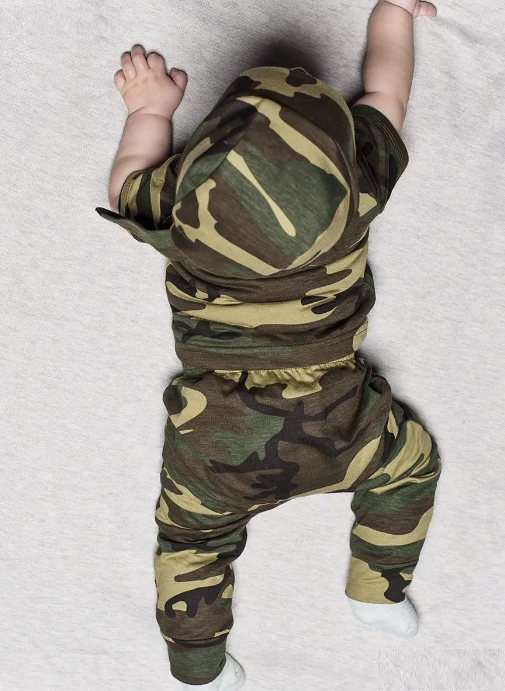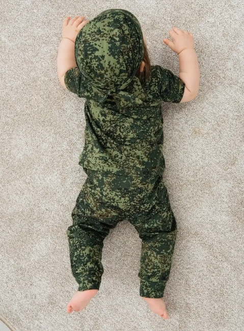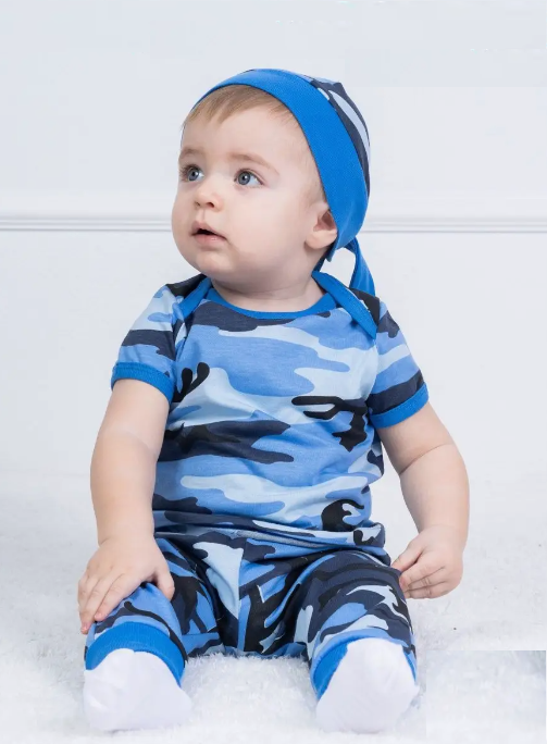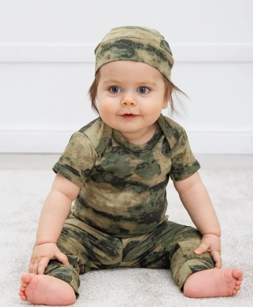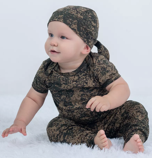 Детский трикотажный костюм для мальчика – оригинальный вариант на День защитника Отечества 23 февраля, День Победы 9 мая, День России 12 июня для малыша! Детские костюмы для малышей из нашего ассортимента отвечают самым высоким требованиям качества и безопасности. Домашний брючный костюм от российского бренда «TOPOTUSHKI» выполнен из натурального хлопкового полотна. Идеально подходит для нежной кожи ребенка. Камуфляжные штаны на удобной резинке, с открытыми ножками на манжетах и местом для подгузника, удобно и свободно сидят. Футболка с длинным рукавом и горловиной-конвертом без дополнительных застежек позволит малышу свободно двигаться и играть, не чувствуя дискомфорта. Дополняет образ одновременно милого и мужественного защитника стильная и комфортная бандана с цельнокроенными завязками, которые позволяют регулировать плотность прилегания головного убора к голове. Костюм для малыша подходит на осень, на зиму, на лето, весну.
