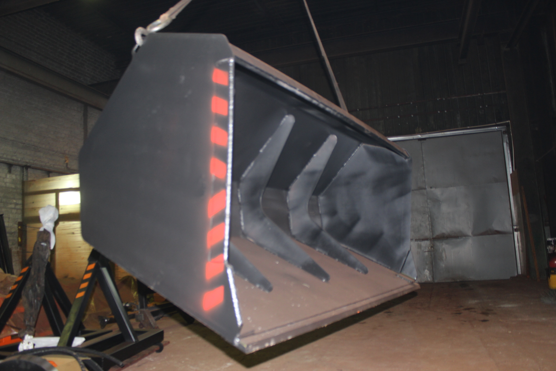 Тело Ковша изготовлено из листа толщиной 4 мм, боковины ковша – 8 мм плюс усиление, нож толщиной 20 мм и усиление днища ковша 20 мм