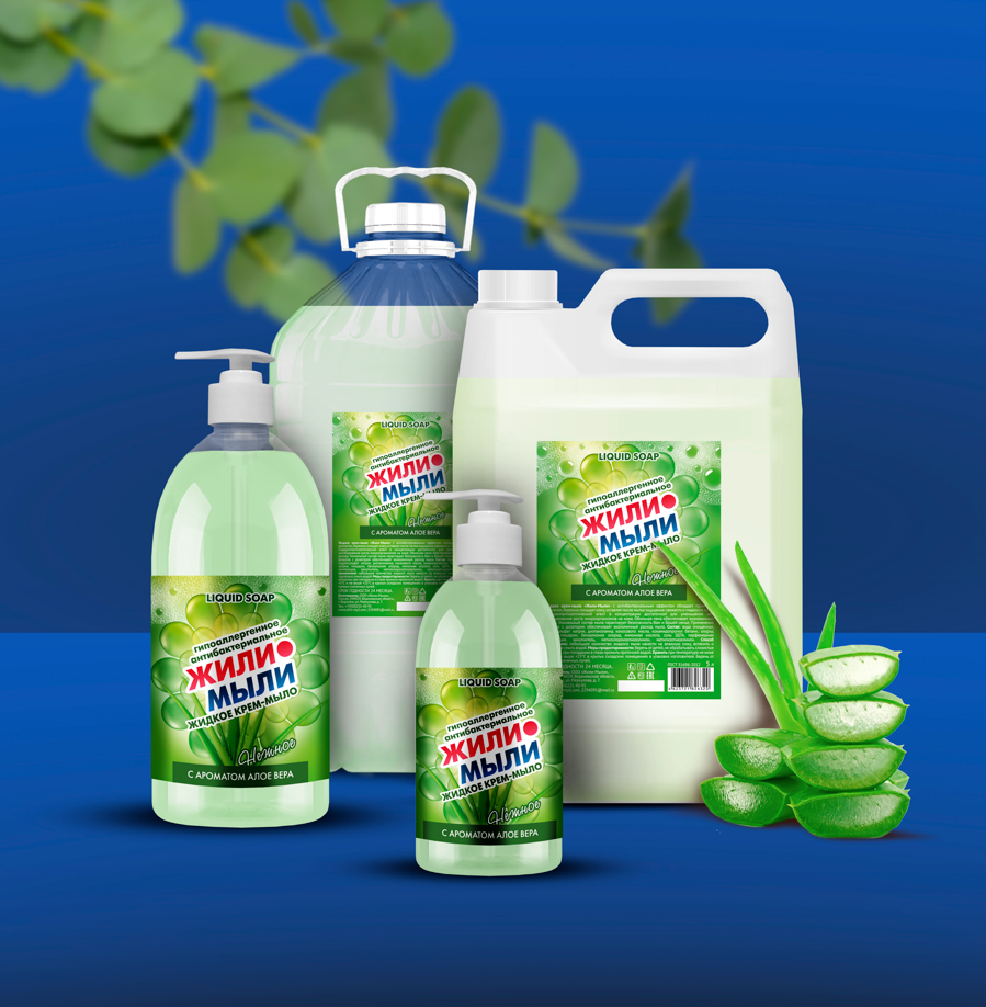 3. Крем-мыло «Жили-Мыли» Антибактериальное аром. «Алое Вера»,1 л, дозатор, флакон