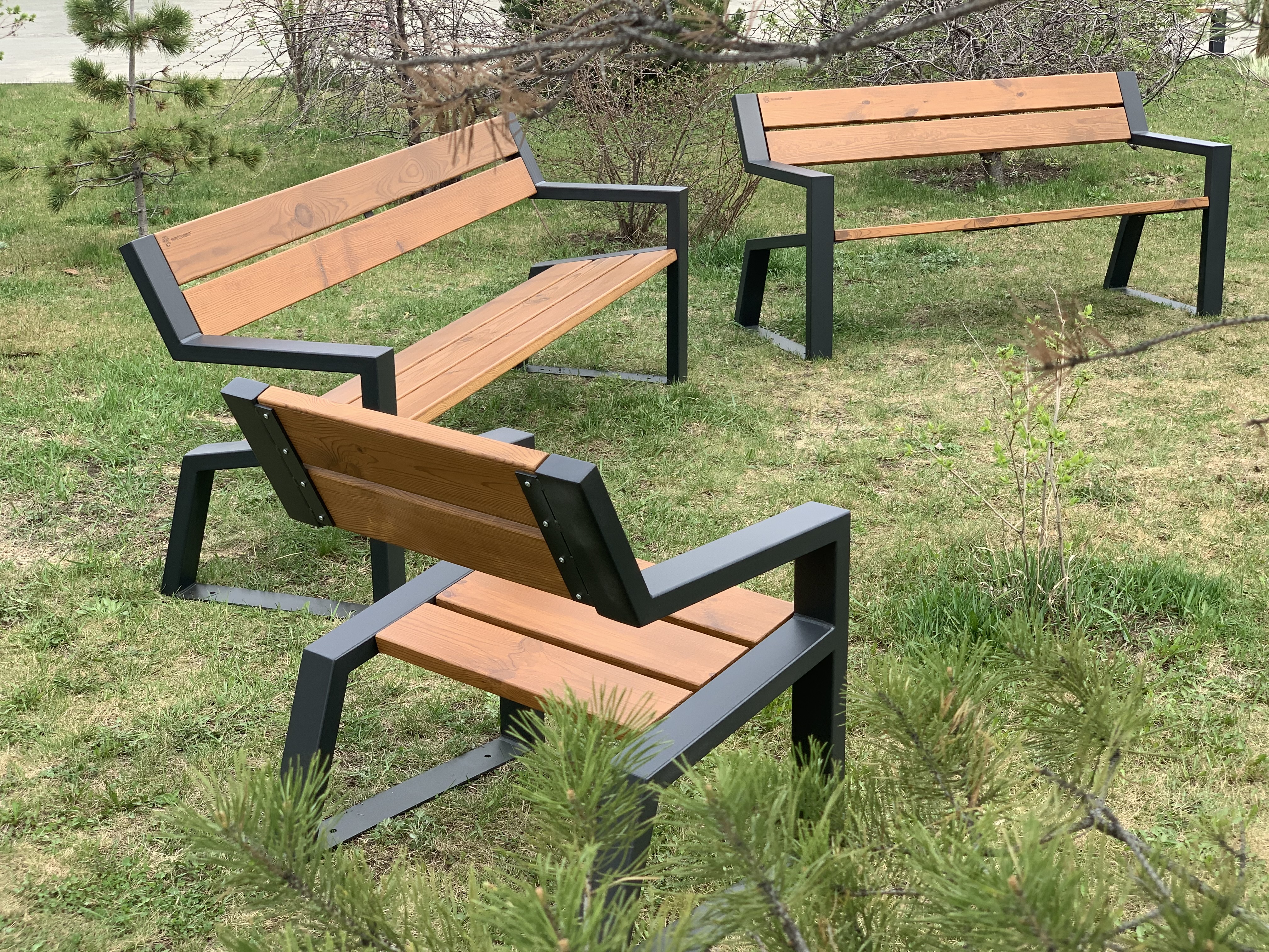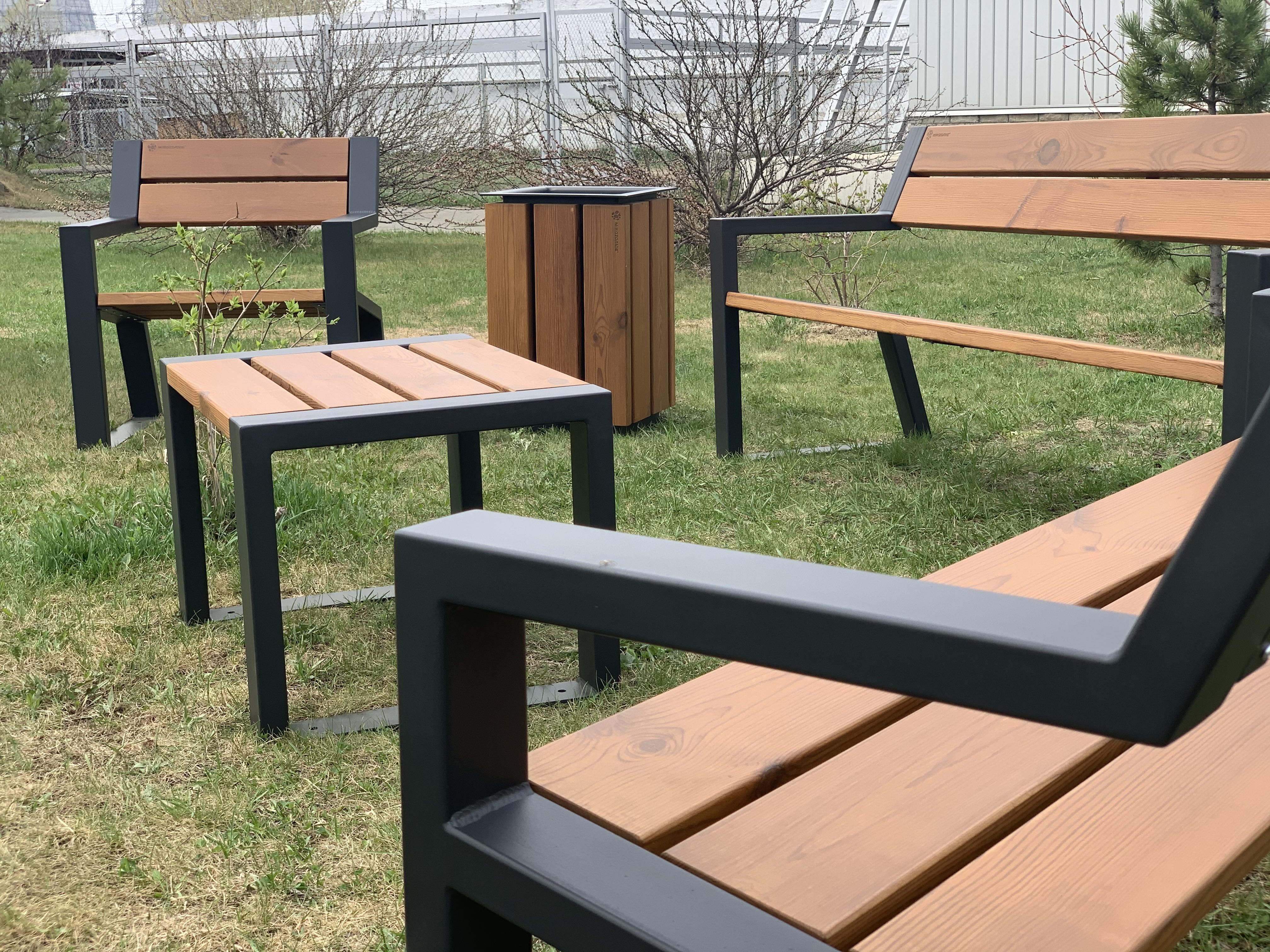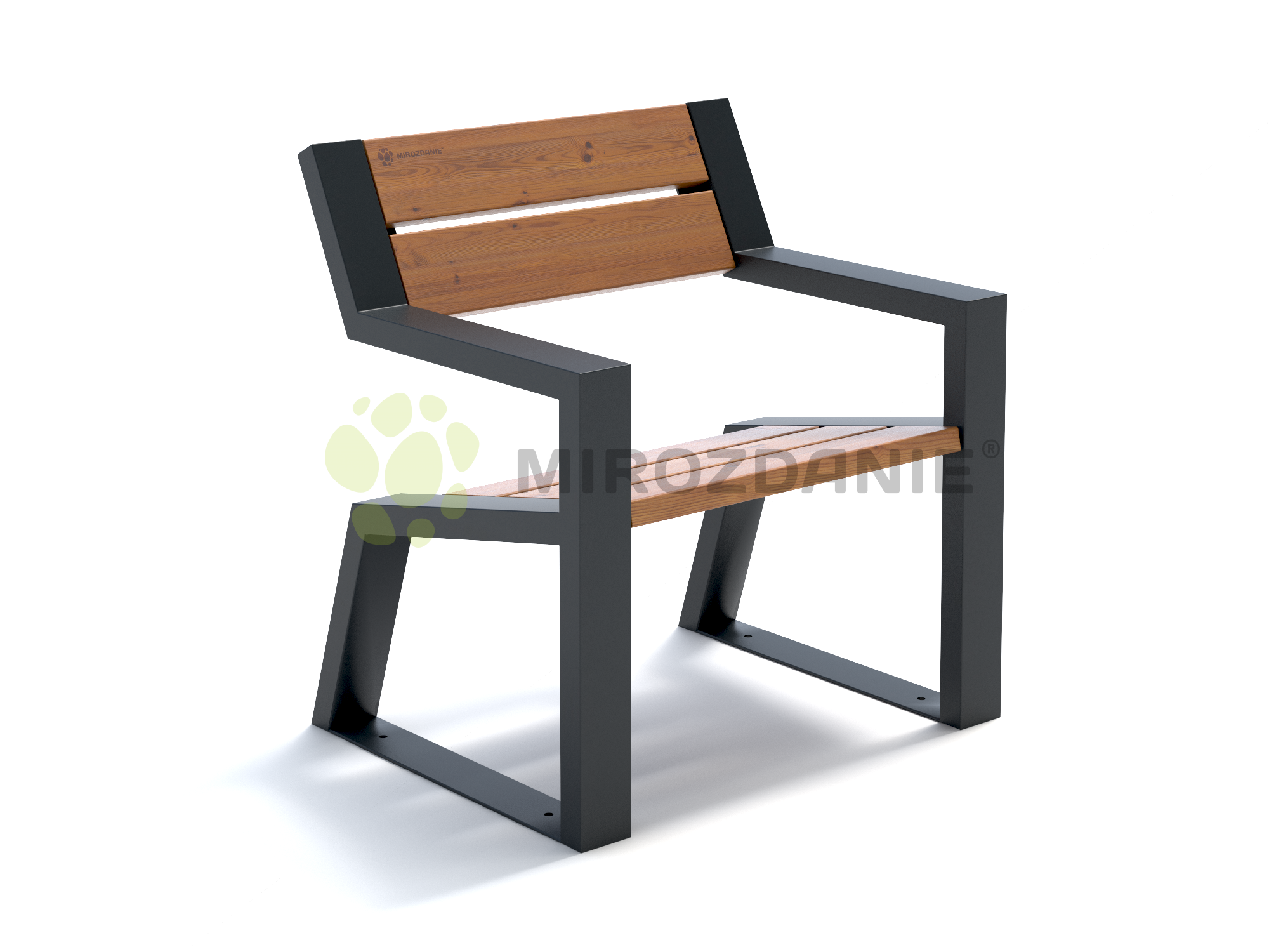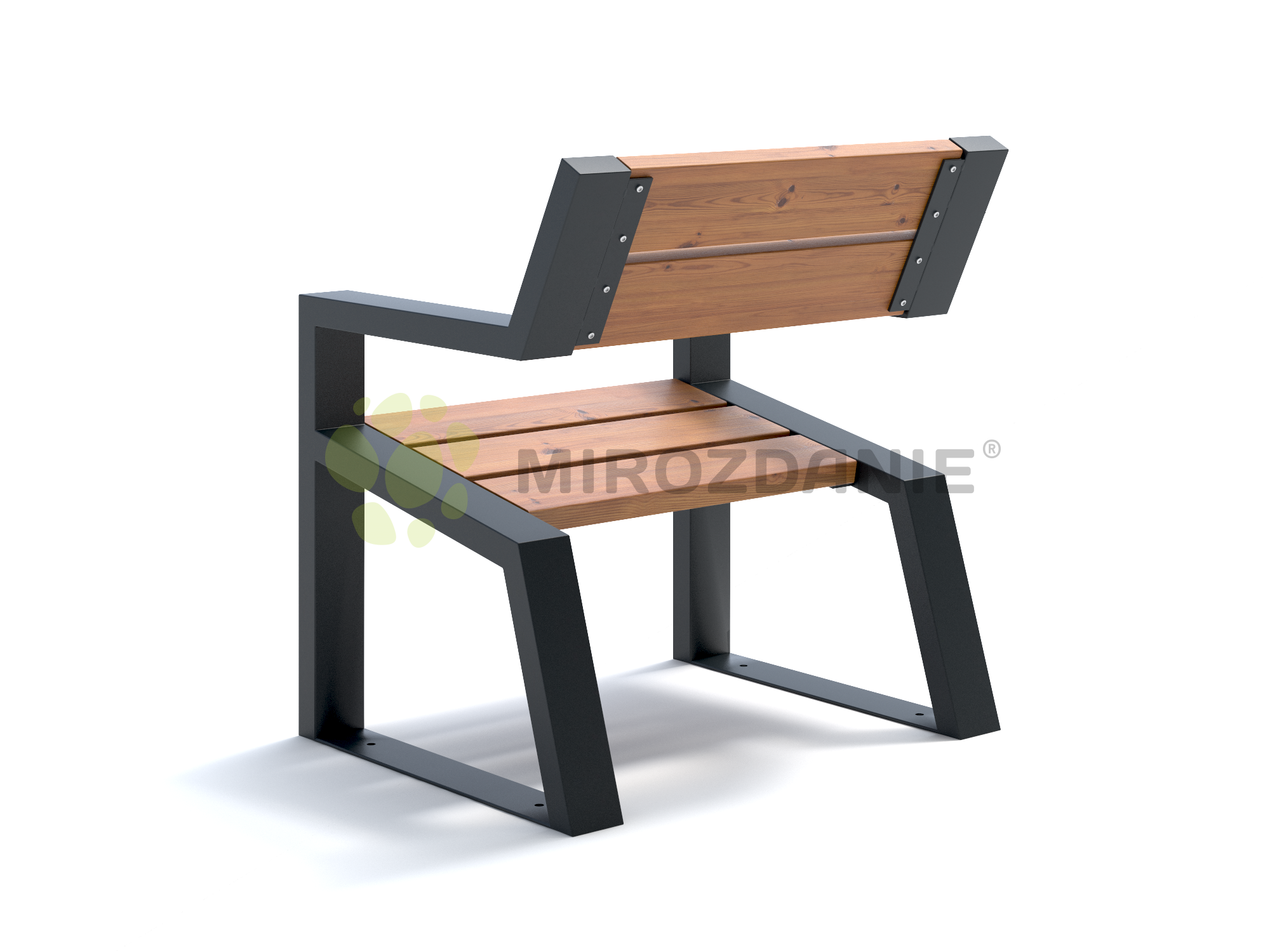 Комфортное уличное кресло из термодерева с подлокотниками «Mountain» 740 цвет графит в современном дизайне. Прекрасно подойдет для благоустройства городского парка или придомовой территории.