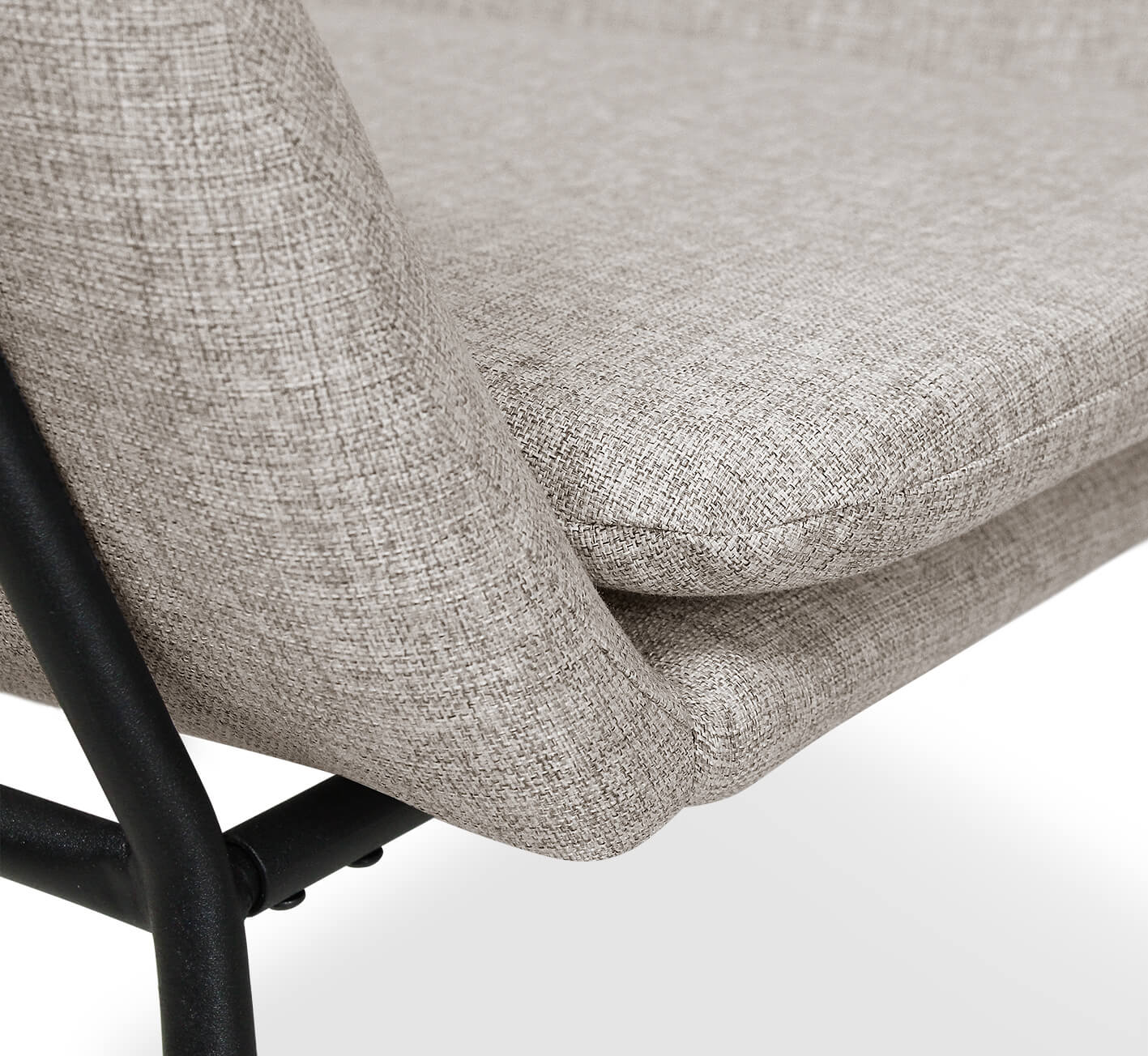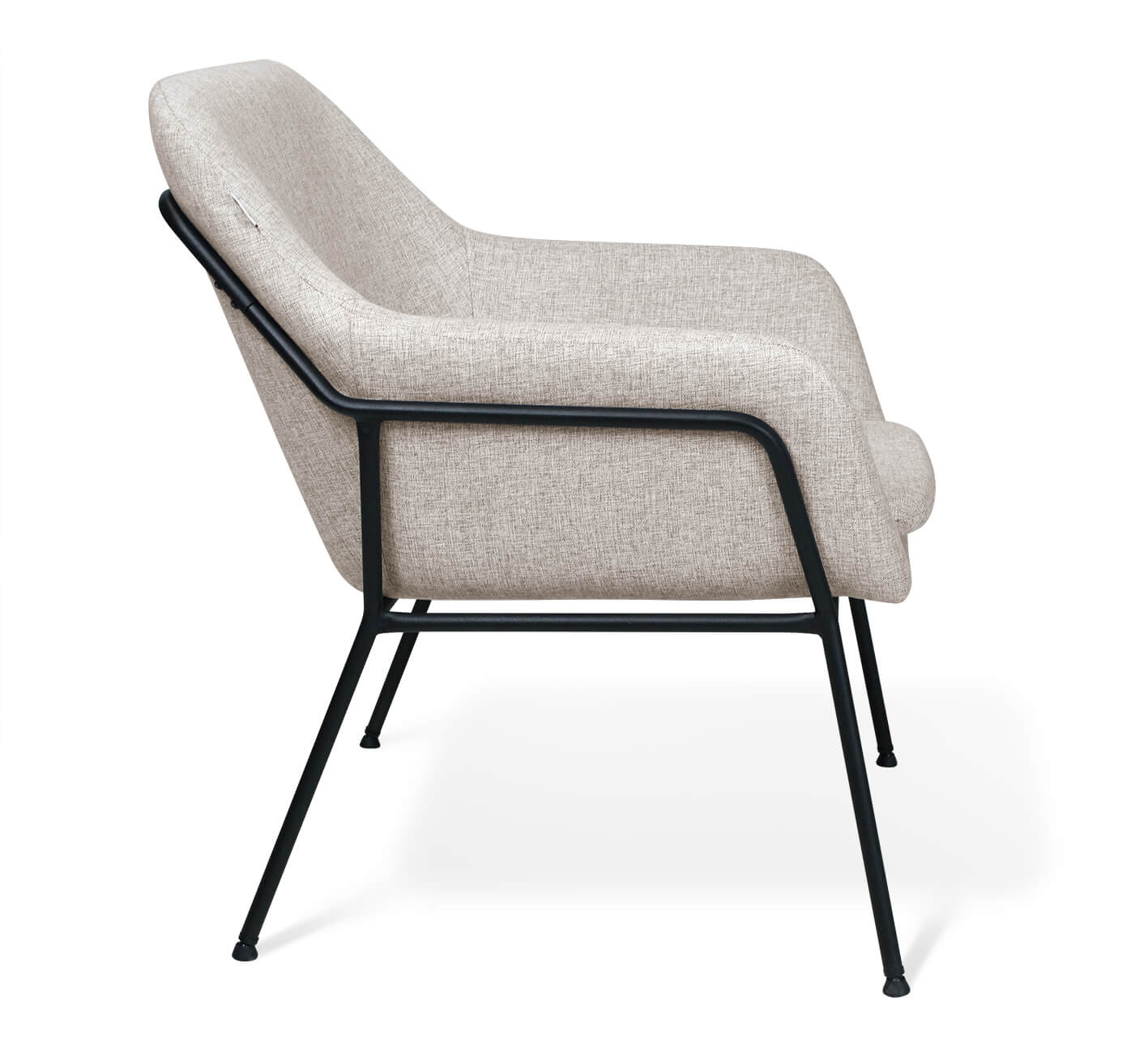 Мягкое уютное кресло в современном стиле, обитое тканью светло-серого оттенка из рогожки, на каркасе из черного металла. Благодаря своему универсальному дизайну и лаконичному сочетанию цветов такое кресло гармонично впишется практически в любой современный интерьер кафе, бара, ресторана, офиса, общественных учреждений, залов ожидания или дома.