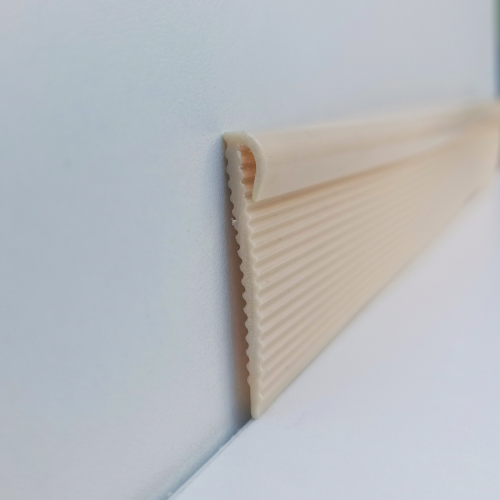 Использование кромки для ковролина и линолеума МА32 будет функциональным решением для напольного покрытия толщиной более 2,5 мм. При монтаже бригада субподрядчика на отделочные работы сможет завести покрытие на любую высоту согласно инструкции по установке. Перед монтажом необходимо будет очистить рабочую поверхность, нанести разметку по всему периметру помещения и клей на обе контактные поверхности. Высота кромки составляет 32 мм. Этот профиль имеет дополнительный рельеф на своей поверхности для лучшей адгезии с поверхностью стены. Также, рельеф предусмотрен на внутренней части кромки для предотвращения соскальзывания линолеума. Изделие может быть окрашено в любой цвет RAL Classic.