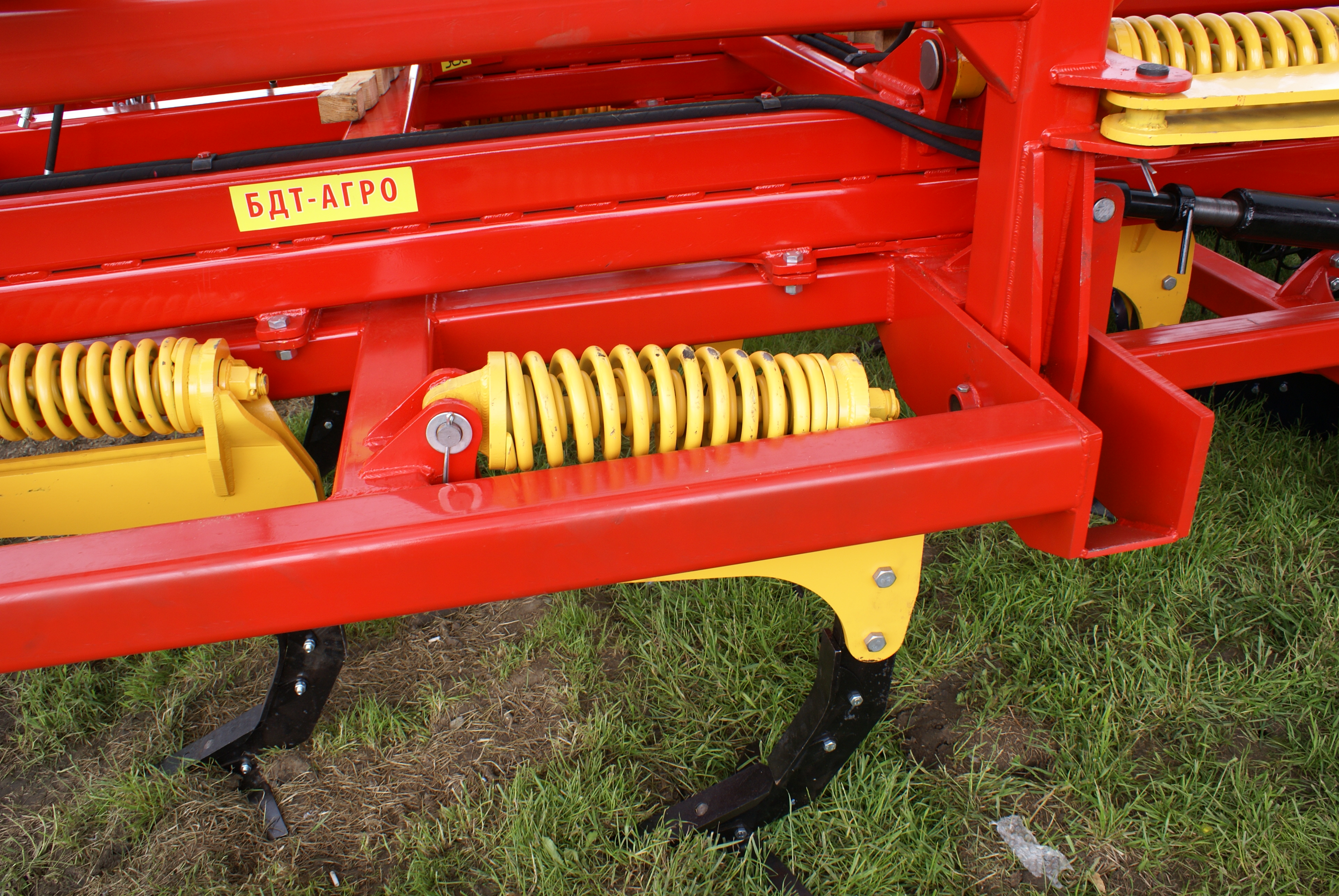 Наличие пружинной защиты стоек позволяет использовать КСТ на каменистых почвах. В случае наезда культиваторной лапы на непреодолимое препятствие, стойка вместе с лапой подымается вверх, объезжая препятствие. Возврат в рабочее положение осуществляется автоматически под воздействием пружины.