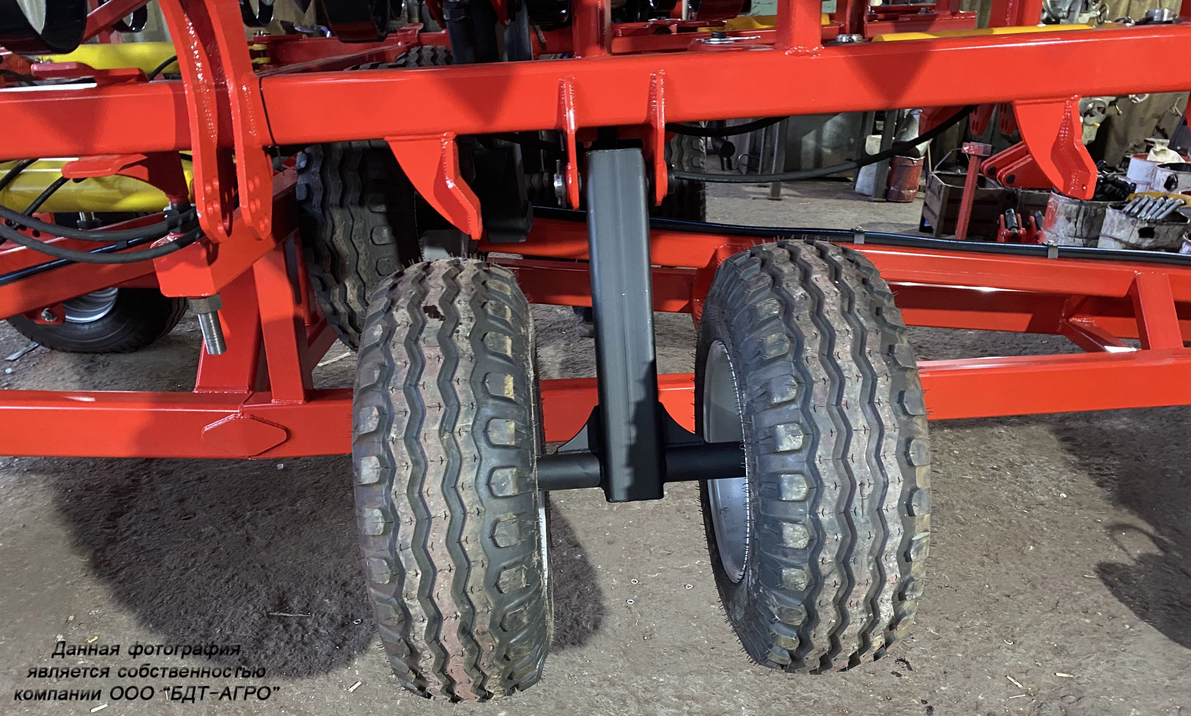В комплектации культиватора опорными колесами, они могут попадать в борозды от проезжавших ранее машин, проехать по твердому участку и прочее, соответственно меняется глубина обработки всей секции, которая поддерживается этими опорными колесами.