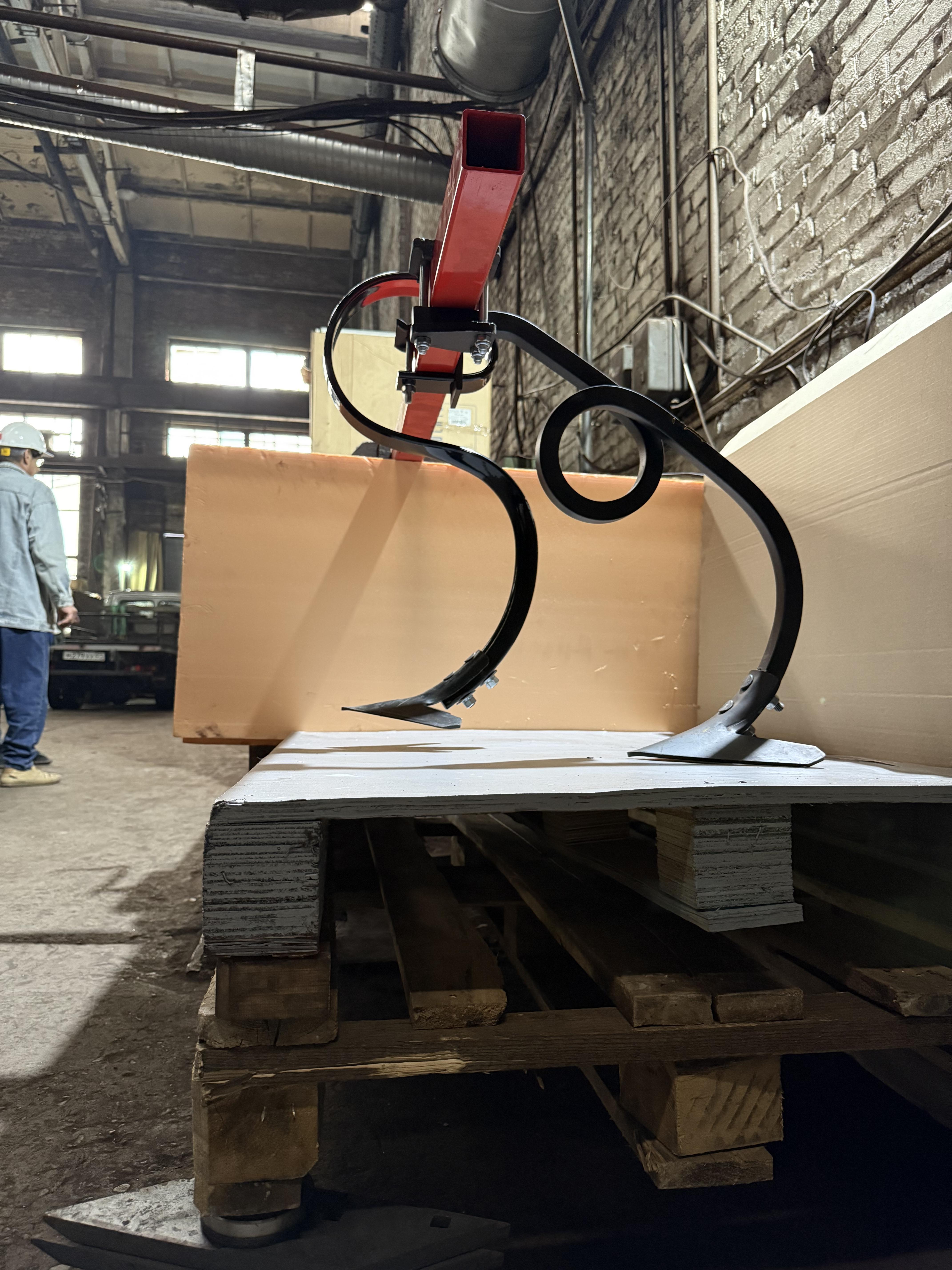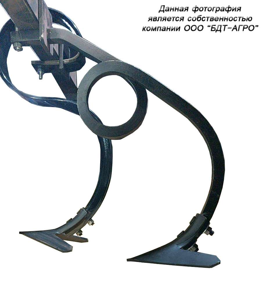 Мы наладили выпуск своих С-образных стоек, со своим оригинальным креплением к раме культиватора. С-образная стойка производства БДТ•АГРО лучше держит курсовую устойчивость. Она не отклоняется вбок. Таким образом происходит полное подрезание крупного сорняка. Под чрезмерной нагрузкой культиваторная лапа с С-образной стойкой отклоняется вверх, почти не меняя наклон. Расстояние от носка лапы и от края лапы до поверхности поля не меняются. И в результате обработки получается ровное дно.