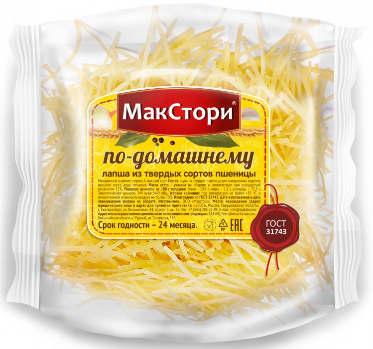 Лапша Суповая подойдёт для супа и гарнира, но особенно мы гордимся тем, что наша лапша не разваривается в супах даже при хранении.