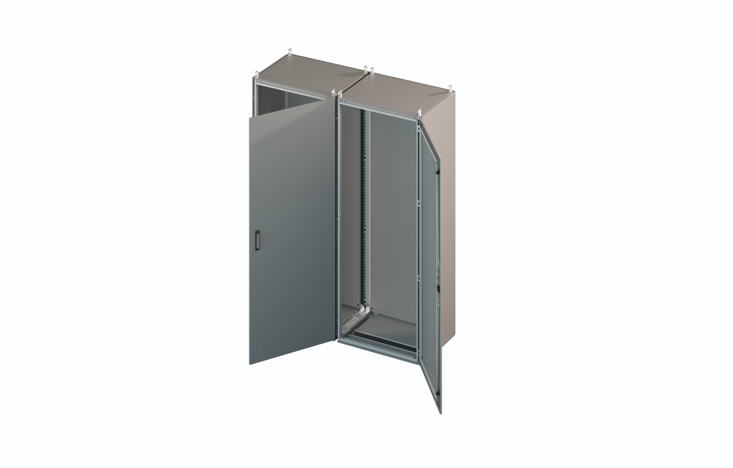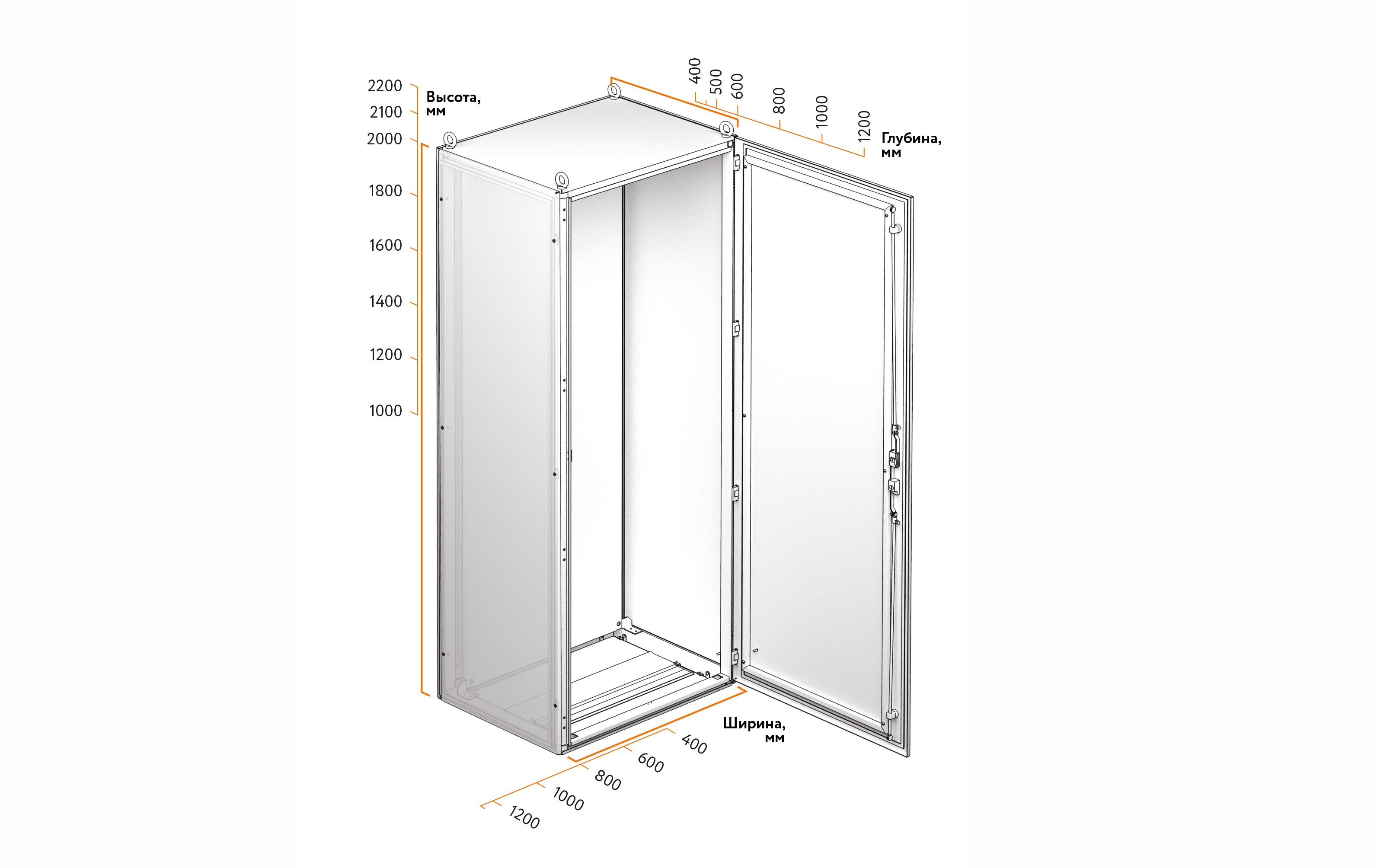 - Возможность установки в шкаф монтажных панелей, глухих или перфорированных.