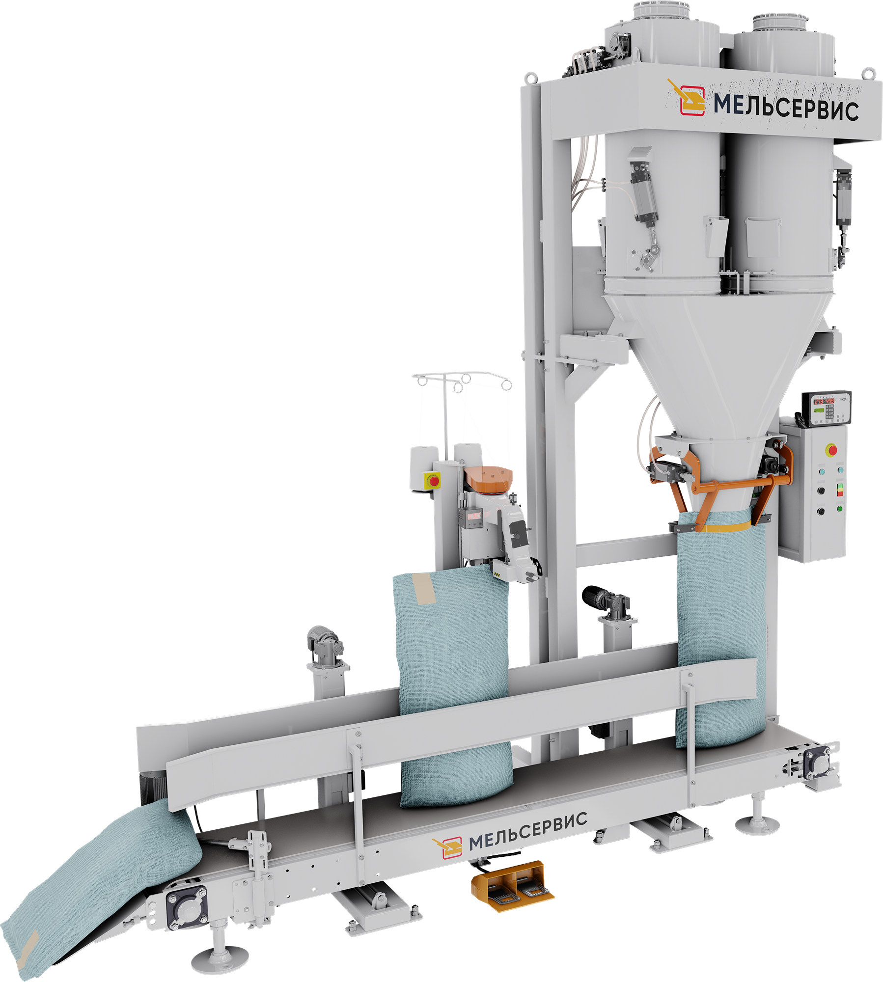 Комплексы оборудования с весовыми дозаторами, конвейерами и зашивочными/запаечными станциями.