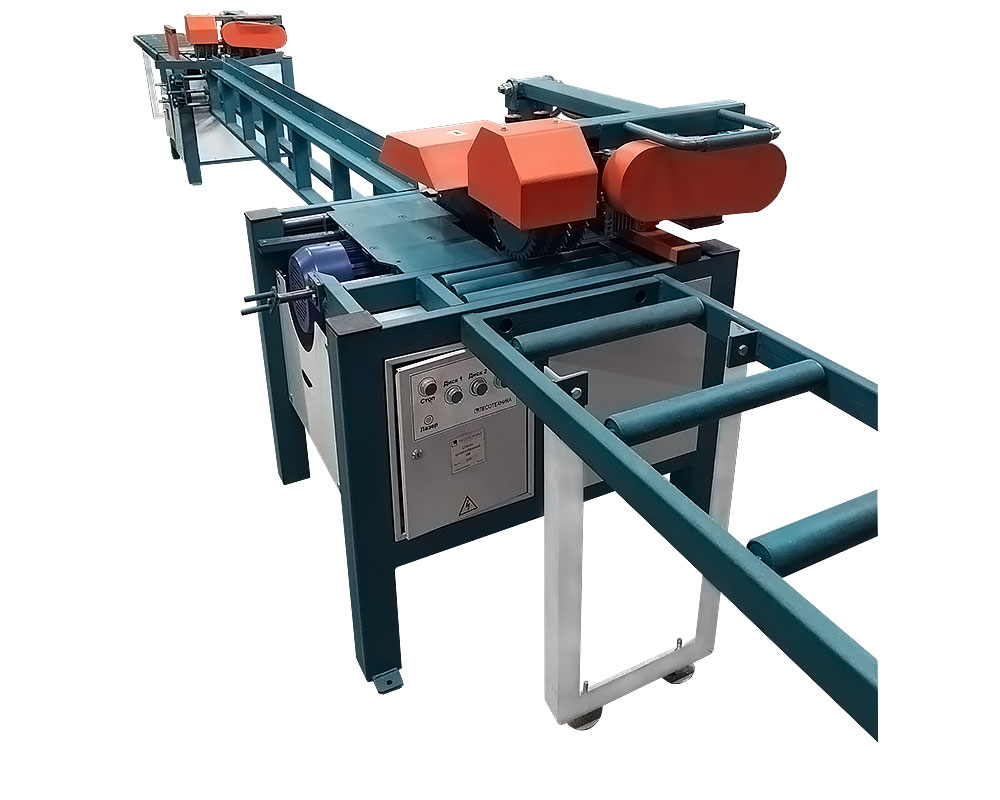 Линия ТМ–800-2 предназначена для переработки горбыльной доски в обрезной пиломатериал за один проход. Она состоит из двух станков: двухпильного кромкообрезного станка КМ–500 (мощность 15,75 кВт) и делительного станка горизонтального типа СМ–500 (мощность 15,75 кВт), соединенных рейкоотделителем. Горбыльная линия ТМ–800-2 позволяет получать чистовой обрезной пиломатериал, паллетную заготовку, заготовки под погонаж путем быстрого раскроя горбыля за один проход.
