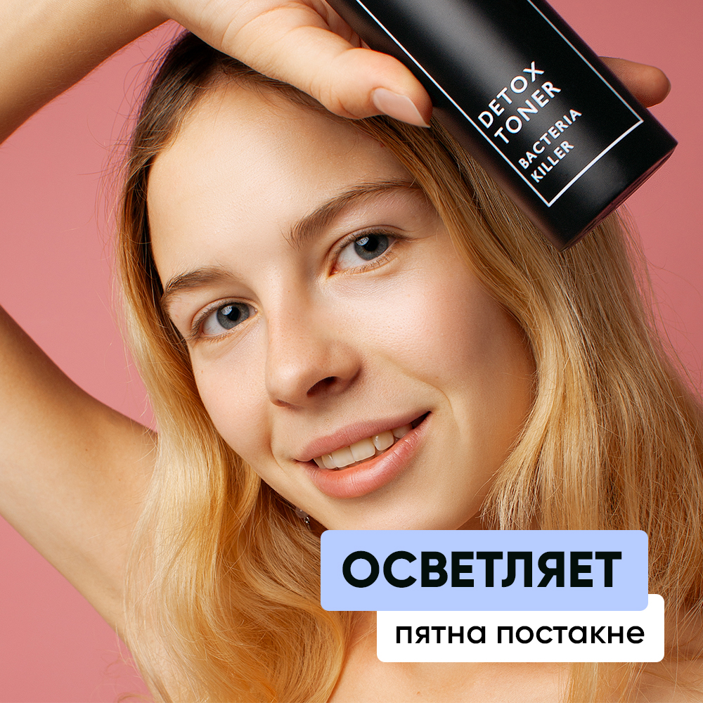 Несмываемый очищающий лосьон тоник для кожи лица DETOX TONER - проверенное средство для борьбы от прыщей и акне на лице и теле. Тоник для лица для жирной и комбинированной кожи - профессиональная уходовая российская косметика от прыщей и постакне. Самое эффективное средство от прыщей на лице для подростков быстро приведет в порядок кожные покровы, придаст лицу здоровое сияние и гладкость. Средство от прыщей на лице у взрослых станет секретным оружием в борьбе за идеальную внешность. Лосьон анти акне для проблемной кожи содержит 3 аминокислоты, коллоидное серебро, гидролаты бузины, гинкго, кипарис и витамин С. Витамин С снимает признаки усталости, осветляет покраснения и делает тон свежим. Лосьона для очищения лица для проблемной кожи хватит на 2-3 месяца регулярного использования. Лосьон от прыщей для жирной кожи используется утром и вечером. Тоник против прыщей создает невидимый барьер на коже. Очищающий тоник для проблемной кожи против черных точек защитит от микробов.