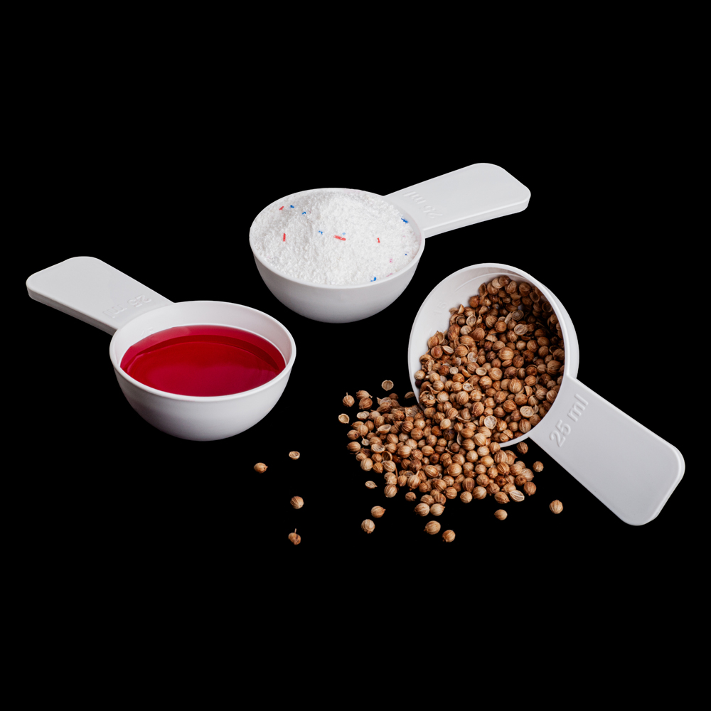 На внутренней стороне черпака предусмотрена мерная шкала на объемы в 5 мл и 15 мл, что добавляет функциональности и удобства при использовании.