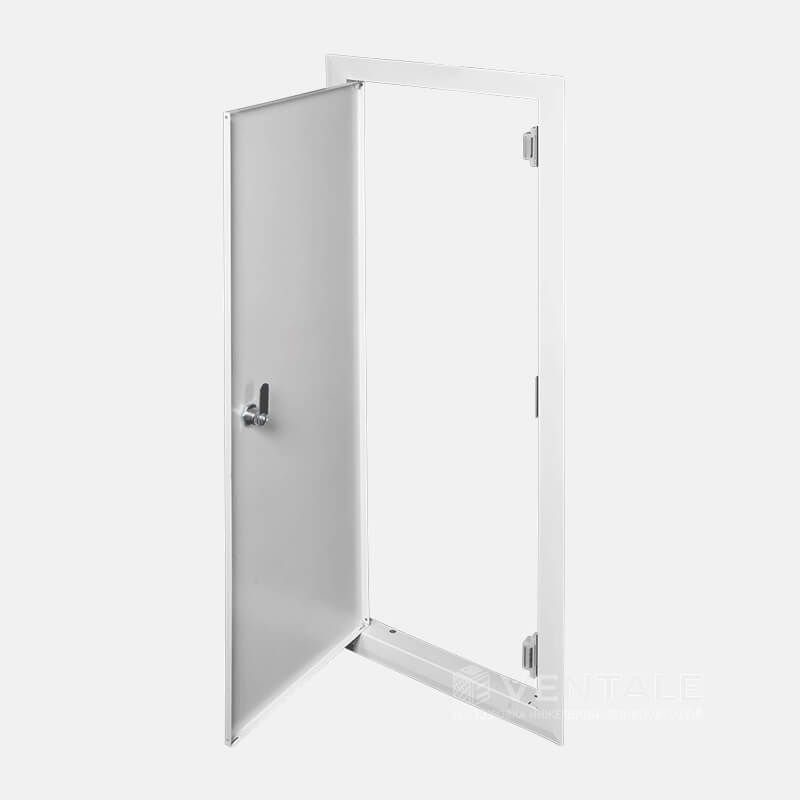 Люк сантехнический ревизионный металлический с замком Ventale из стали 0,8 мм. Особенности модели: замковая модель ревизионного сантехнического люка, дверка фиксируется за счет цилиндрового (почтового) замка, при увеличенных размерах изделий дополнительно могут быть установлены магнитные защелки. Отличаются степенью секретности, мастер ключ — одинаковый ключ ко всем замкам серии, идивидуальный ключ — к каждому замку подходит определенный ключ. Оптимальная модель для изделий небольших размеров. Для чего: используется для маскировки инженерных коммуникаций, которые необходимо эстетично скрыть, но при этом ограничить доступ. Чаще всего устанавливается в местах общего пользования. Из чего: изготавливается из холоднокатанной стали методом штамповки и раскроя на гильотине, детали гнутся на кривошипных прессах, собирается контактной или полуавтоматической сваркой, с последующей полимерной порошковой покраской.