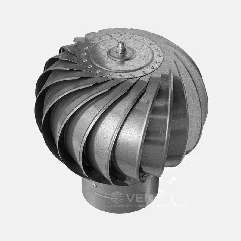Турбодефлектор Ventale. Особенности модели: кровельный элемент естественной вентиляции. Изготавливается из оцинкованной стали или черной стали с последующей порошковой покраской в цвет по каталогу RAL. Для чего: устанавливается для усиления естественной тяги в вентиляционном канале. Улучшает циркуляцию свежего воздуха в помещениях. Из чего: изготавливается из оцинкованной или холоднокатанной стали методом лазерного раскроя, детали гнутся на листогибочном прессе с ЧПУ, собирается контактной или полуавтоматической сваркой, с последующей полимерной порошковой покраской.