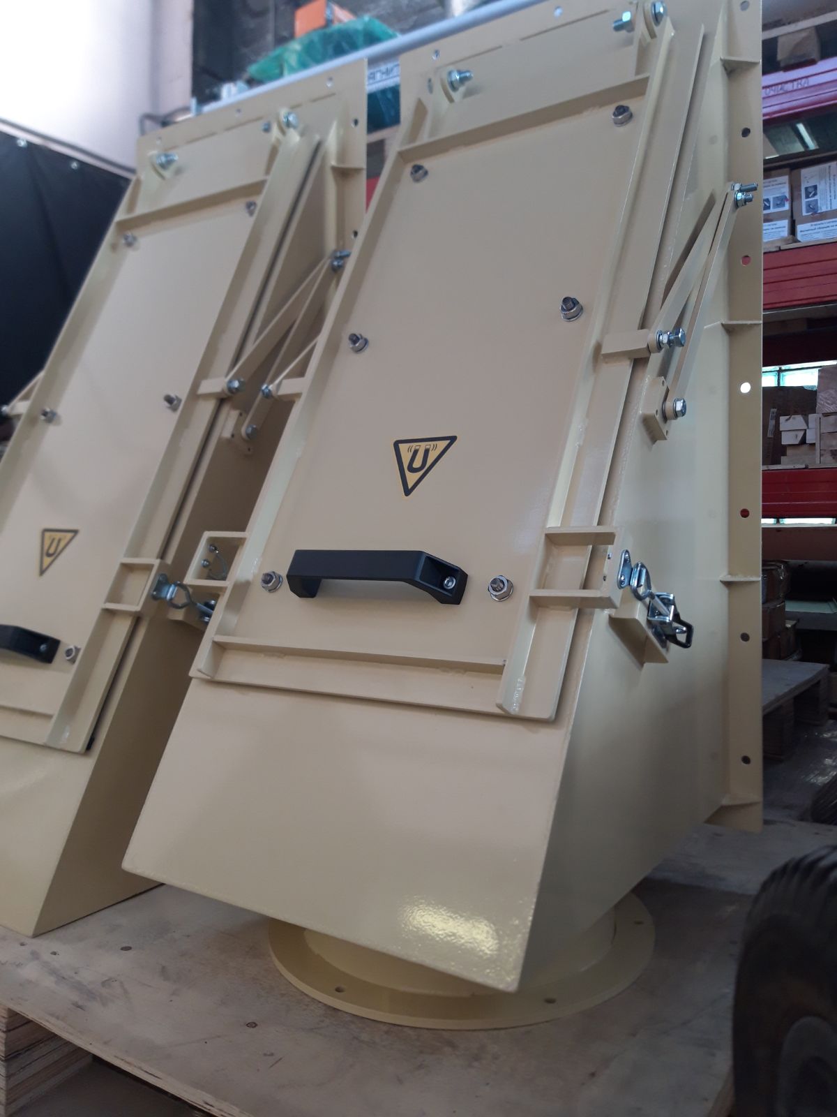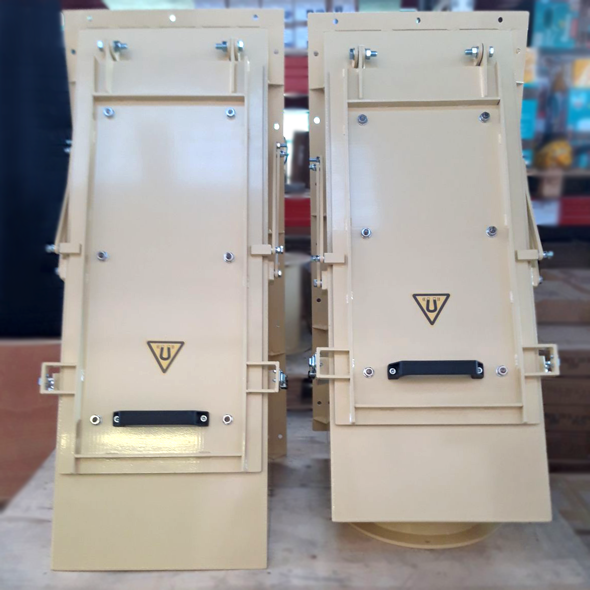 Корпус магнитного уловителя для нории выполнен в виде приемного носка нории с мощной магнитной плитой, расположенной в ревизионной двери, по которой проходит засыпаемое в норию сырье. Все ферромагнитные включения остаются на магнитной плите, а поток чистого продукта движется по трубопроводу дальше. Очистка производится вручную, после остановки подачи продукта. Достаточно открыть откидную дверь и с помощью щетки или ветоши очистить поверхность магнитной плиты от налипшего металла.