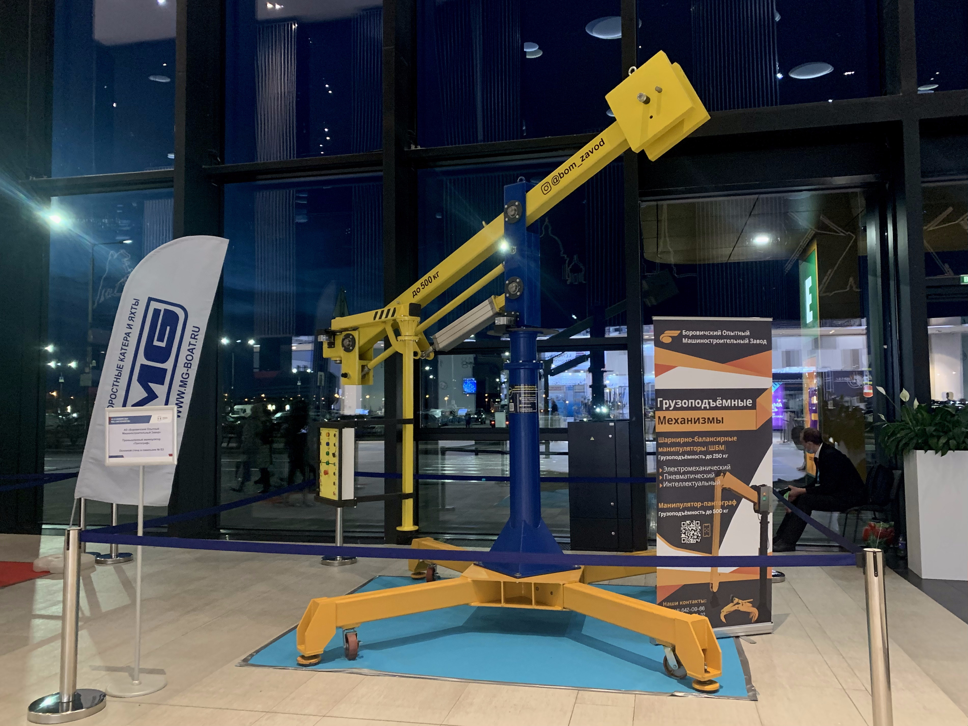 Манипулятор для погрузочно-разгрузочных работ, способный подать деталь в перекрытое сверху пространство, например заготовку под пресс или автомобильное кресло внутрь салона автомобиля на сборочном конвейере.