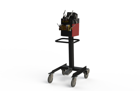 Машина переменного тока, передвижная, на стойке с колесами (есть возможность размещения на столе), оборудована ручным отрезным устройством, имеет встроенный узел отжига. Привод осадки пружинный, приводы зажатия и взвода пружины ручные, охлаждение воздушное.