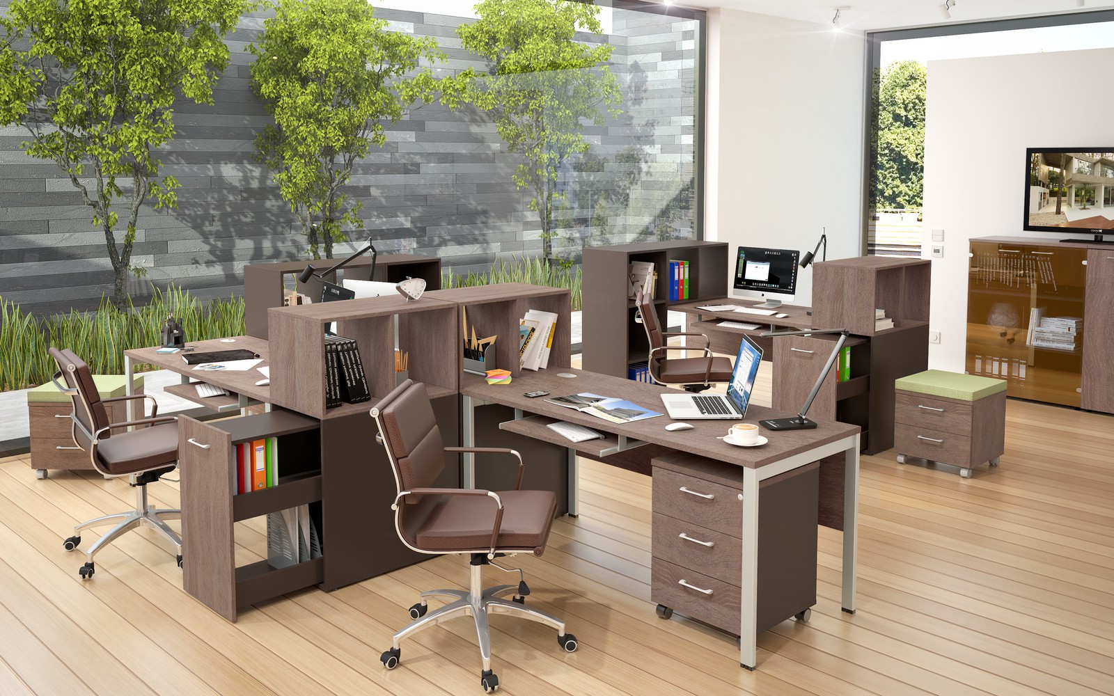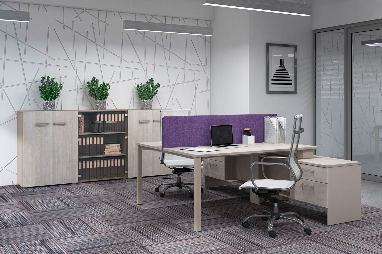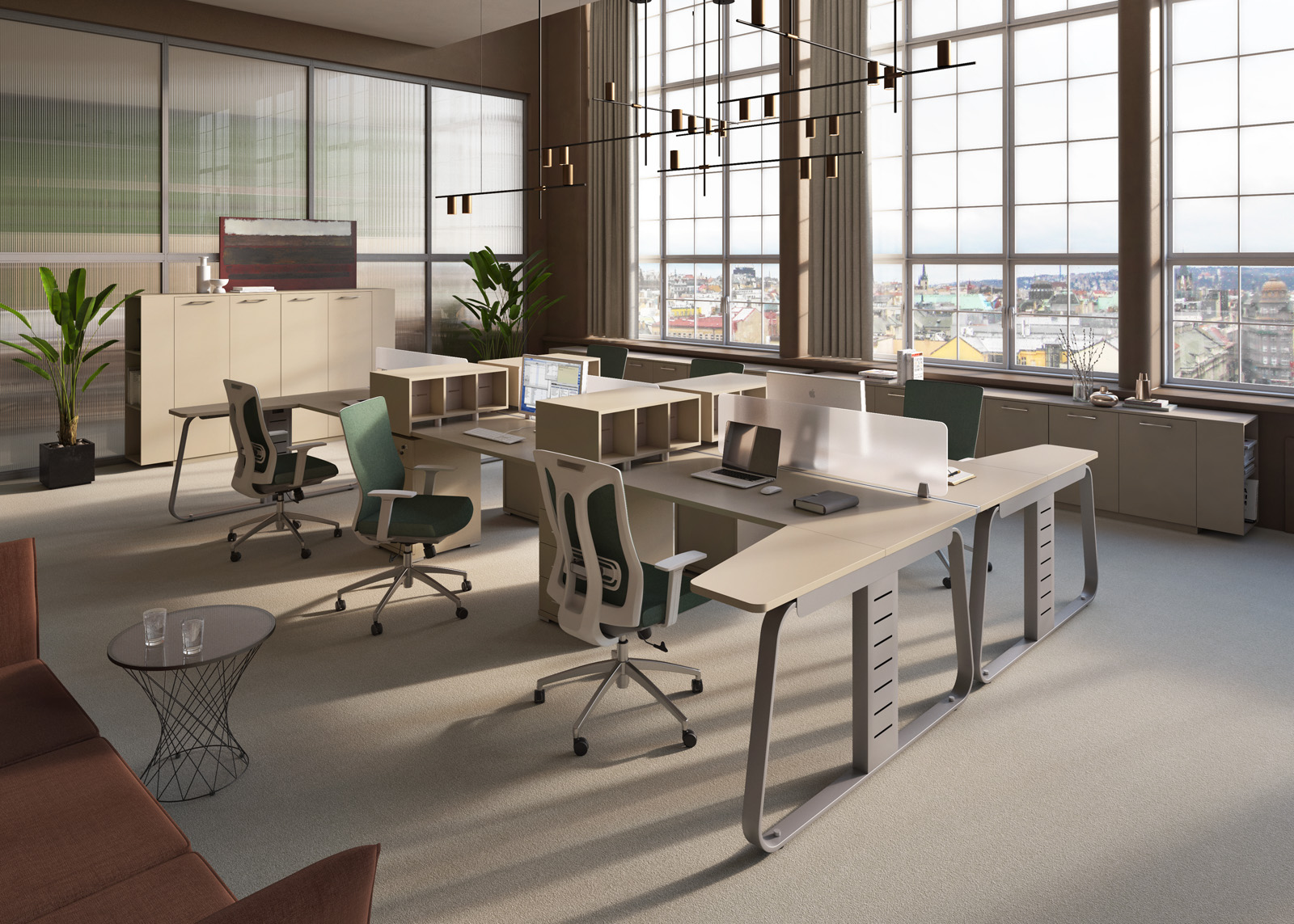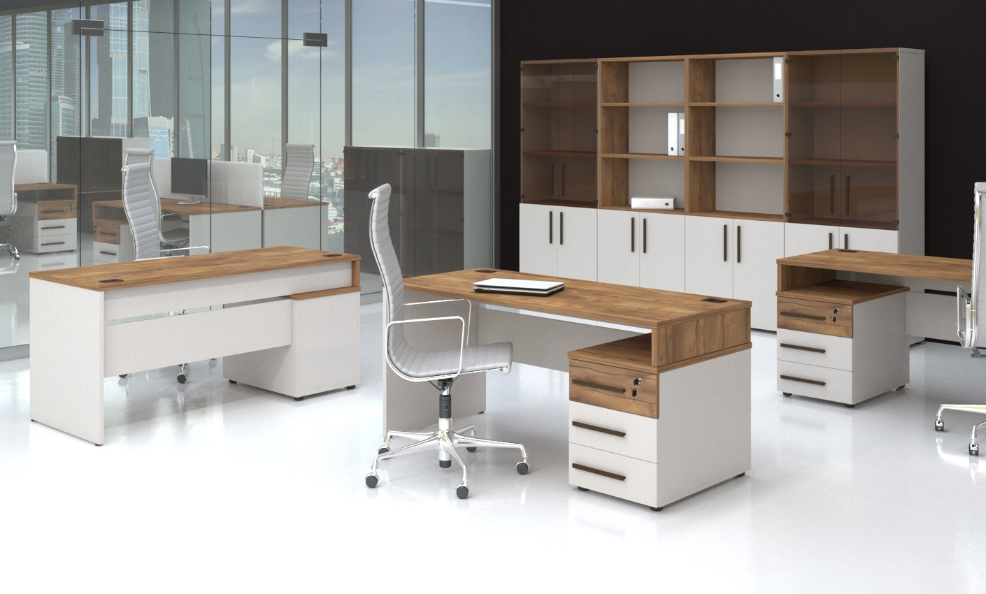 Мебель для сотрудников бизнес-класса изготавливается из ЛДСП, может иметь улучшенный функционал по сравнению с сериями бюджетной категории, а также дополнительные декоративные элементы. Часто выполняется в современных стилях: «хайтек», «лофт» и т.д.