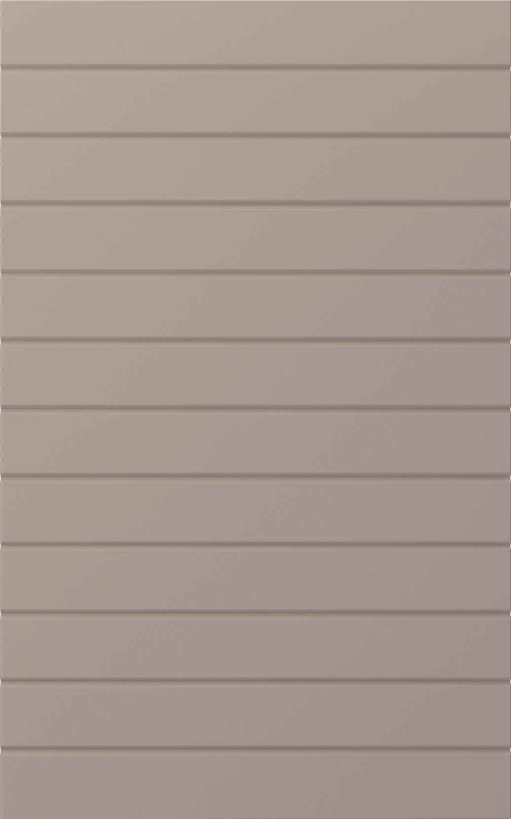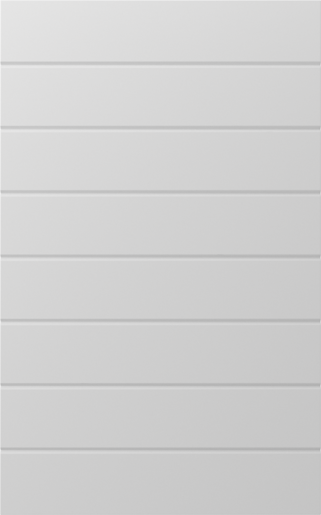 Плоский фасад из плиты МДФ с фрезеровкой в виде горизонтальных полос с шагом 30мм, 60мм, 90мм, 180мм.