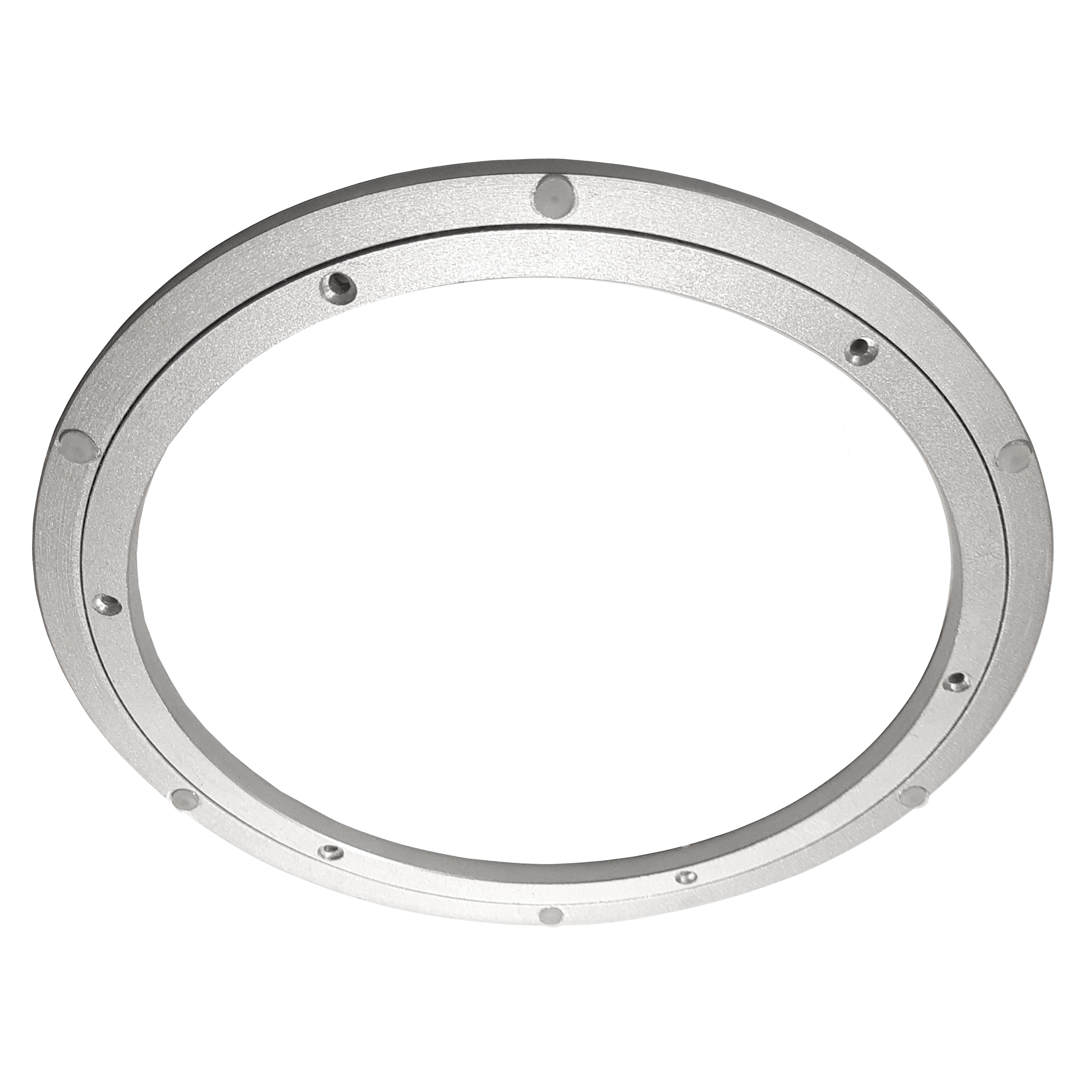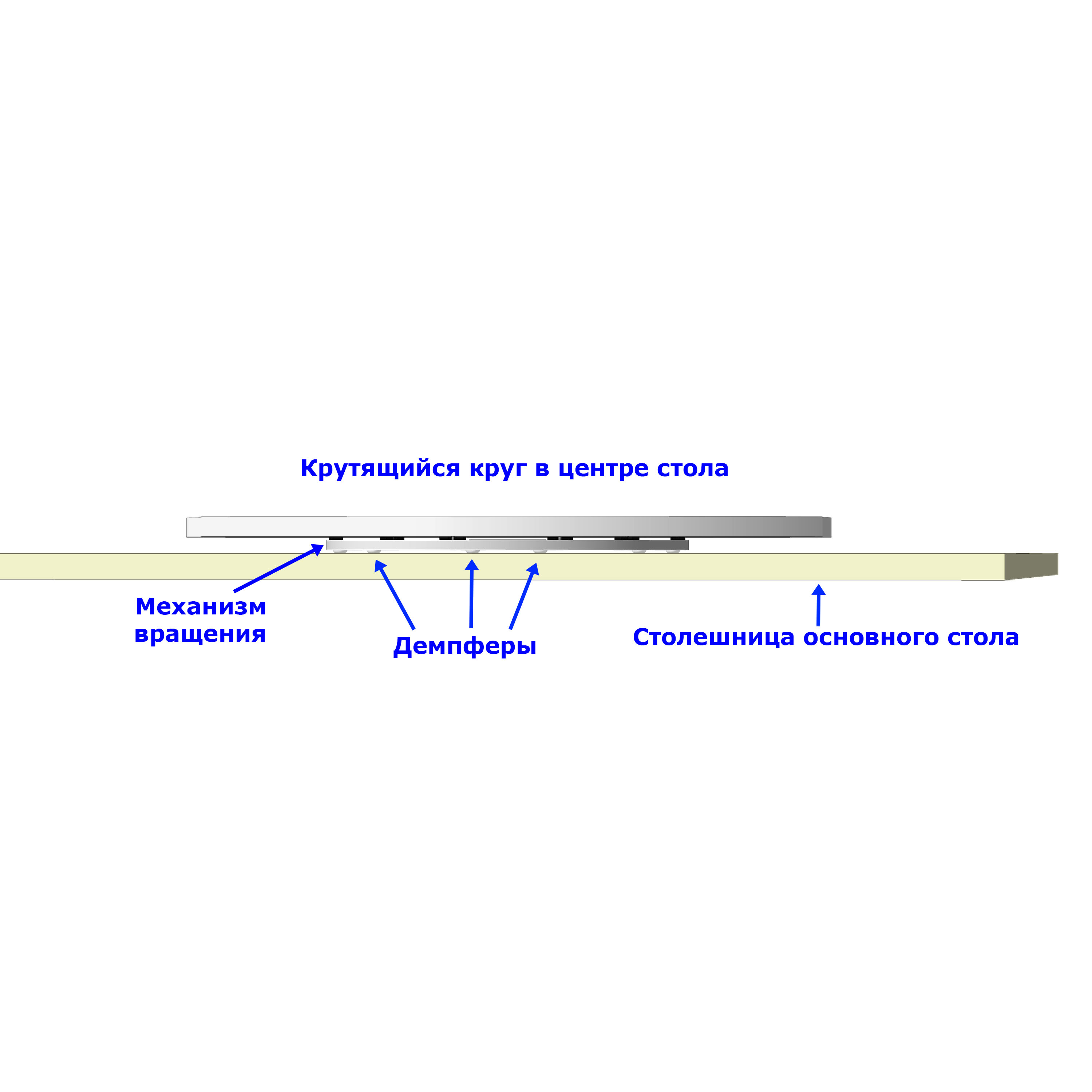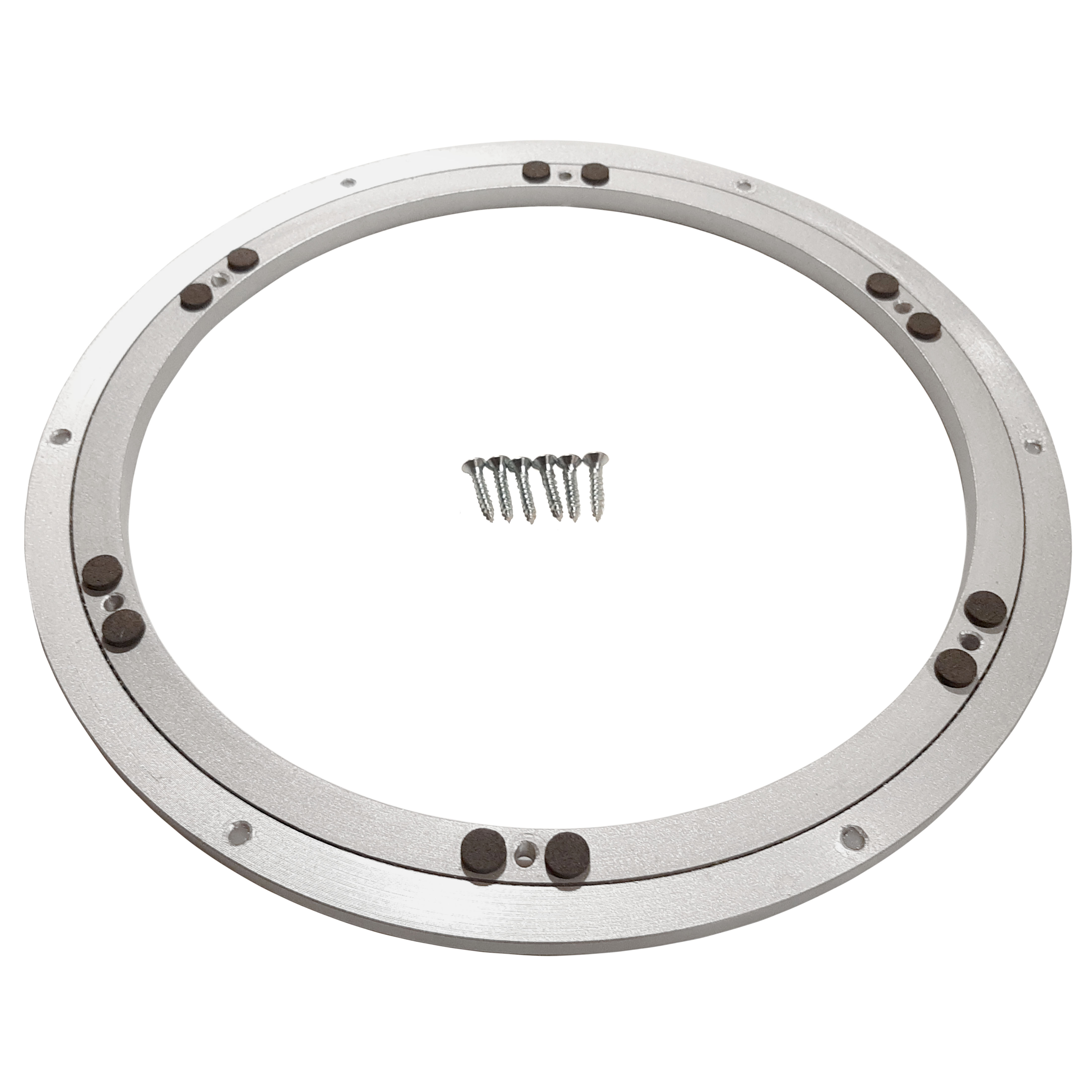 Механизм - это металлический кольцевой подшипник. Для крепления механизма к поворотному кругу предусмотрены отверстия под саморезы. С нижней стороны есть нескользящие мини-ножки, они берегут поверхность стола и скатерть.
