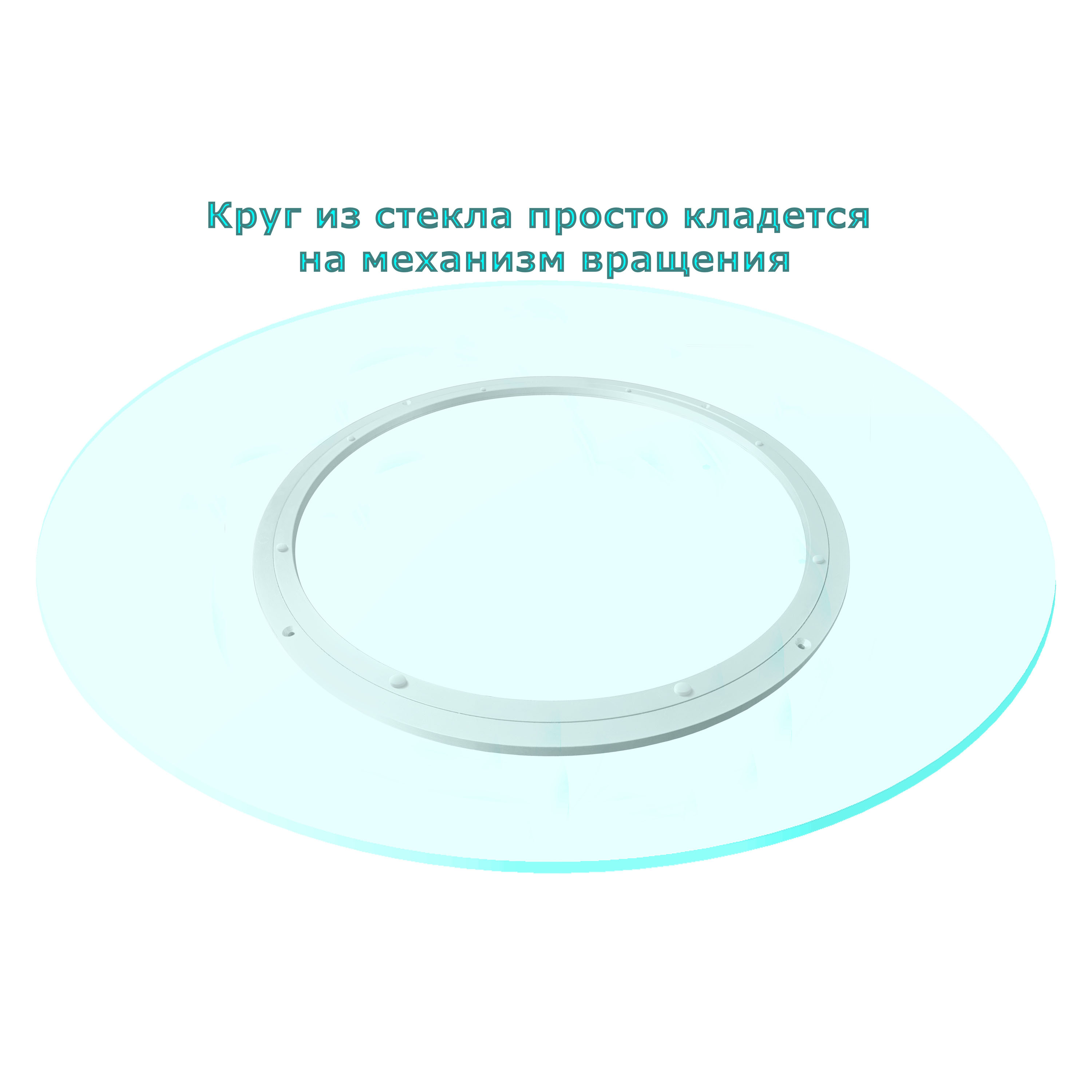 Механизм подходит для поворотного круга-столешницы диаметром от 35 см до 55 см из стекла, МДФ, дерева и т.д. Внимание: круг-столешница в комплект данного механизма не входит! Готовые круглые столешницы предлагаются на OZON.ru с доставкой. Это удобно, вы можете выбрать подходящий для вас цвет круга.