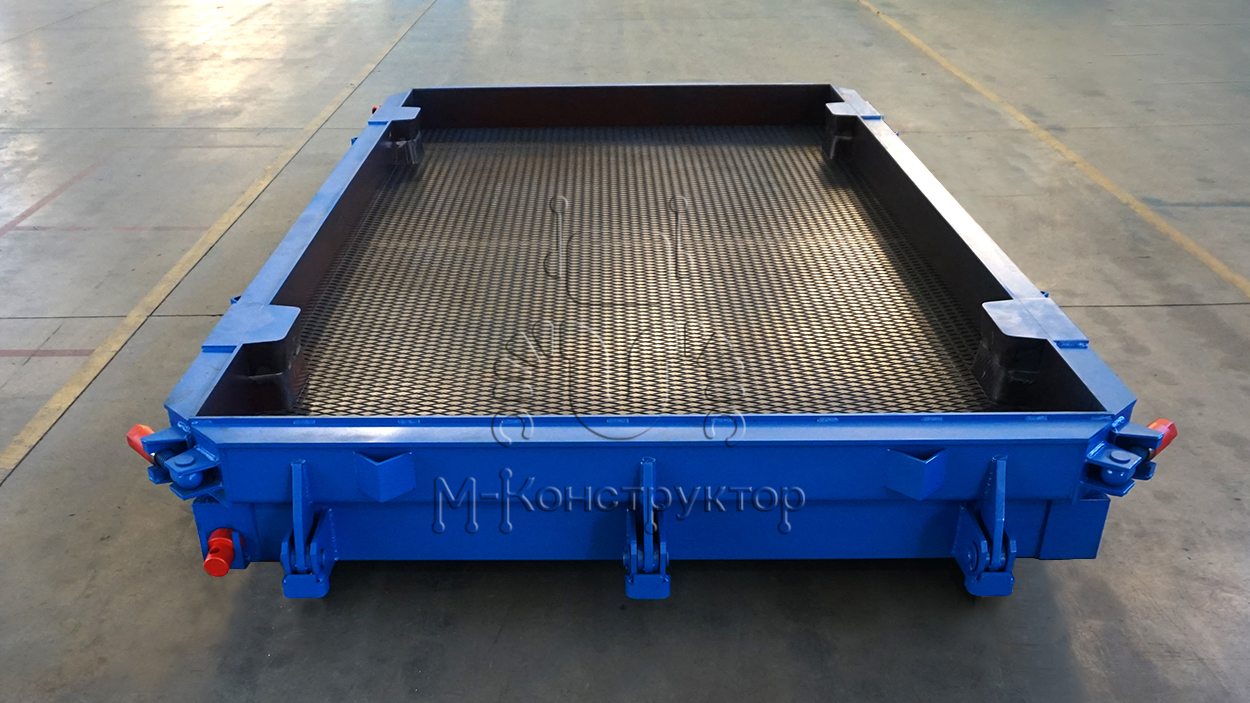 «М-Конструктор» изготавливает формы для производства данных плит как с гладкой, так и с рифлёной поверхностью. Типоисполнение: формы с четырьмя открывающимися бортами. Матричные формы с открывающимися торцевыми бортами и петлеобразователями, продольными бортами, неоткидные.