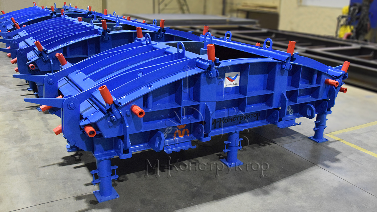 «М-Конструктор» производит металлоформы для производства железобетонных тюбингов, где в одной форме одновременно отливается 8 элементов, которые составляют один полноценный сегмент тоннельной трубы.