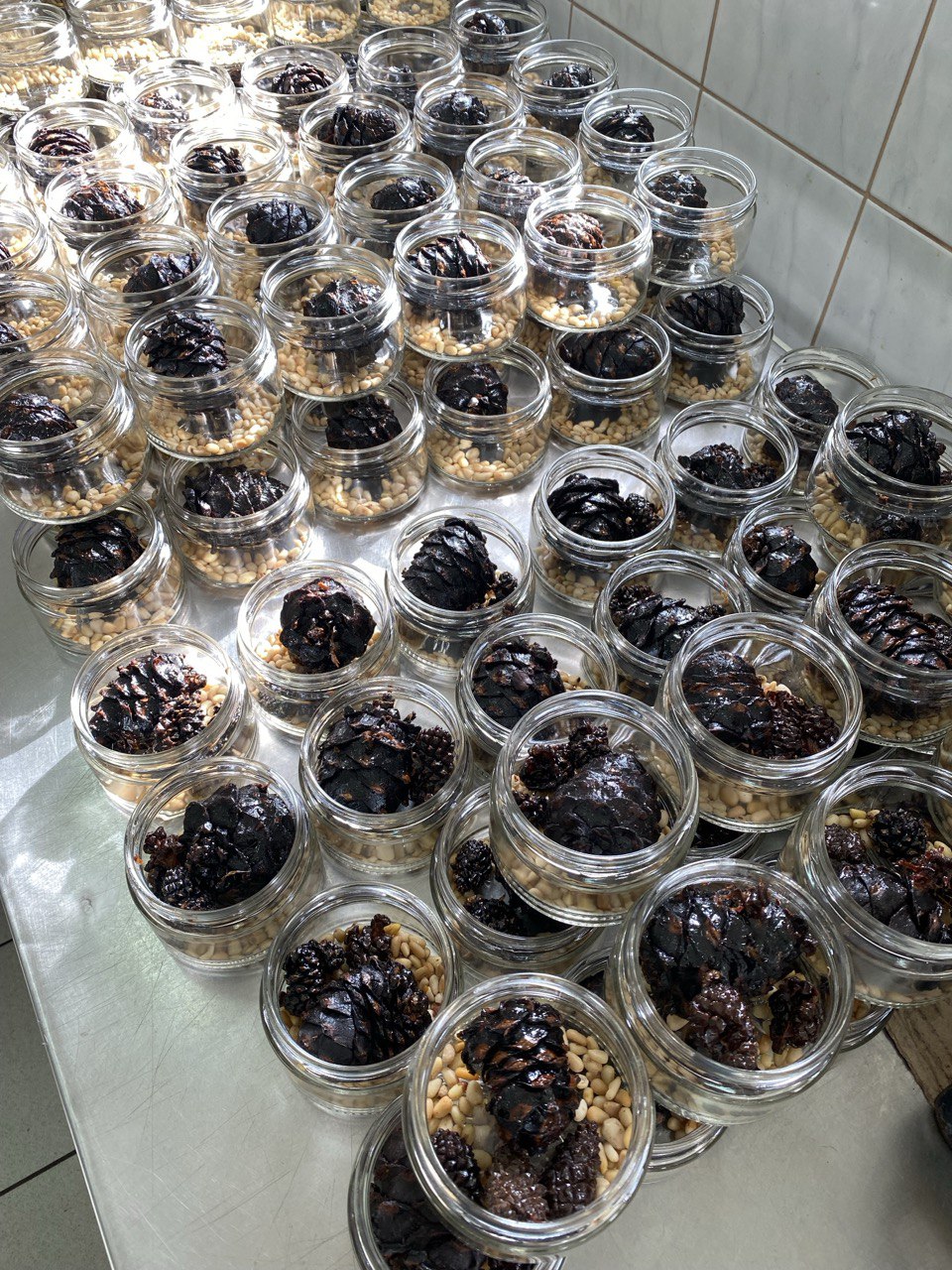 Микс из кедровой и сосновых шишек с кедровыми орешками в сосновом сиропе, от компании Регион-К" Дары Югры". Место сбора дикоросов Ханты-Мансийский автономный округ - Югра. Состав: кедровая и сосновая шишки, ядро ореха кедрового, сосновый сироп: молодая шишка сосны, вода, сахар.